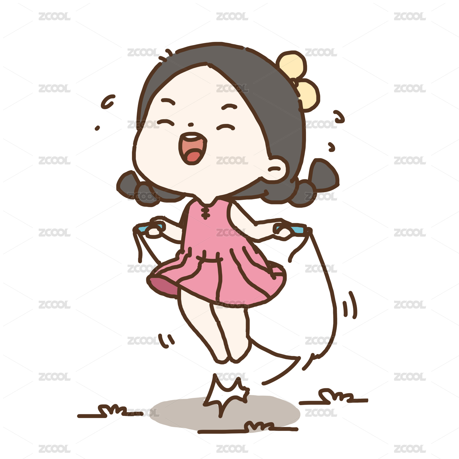 在户外跳绳的小孩子