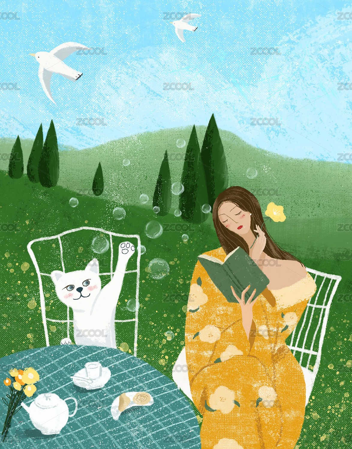 女孩,猫,狗,飞盘,露营,绿色,蝴蝶,自然,HEYYTDK2023