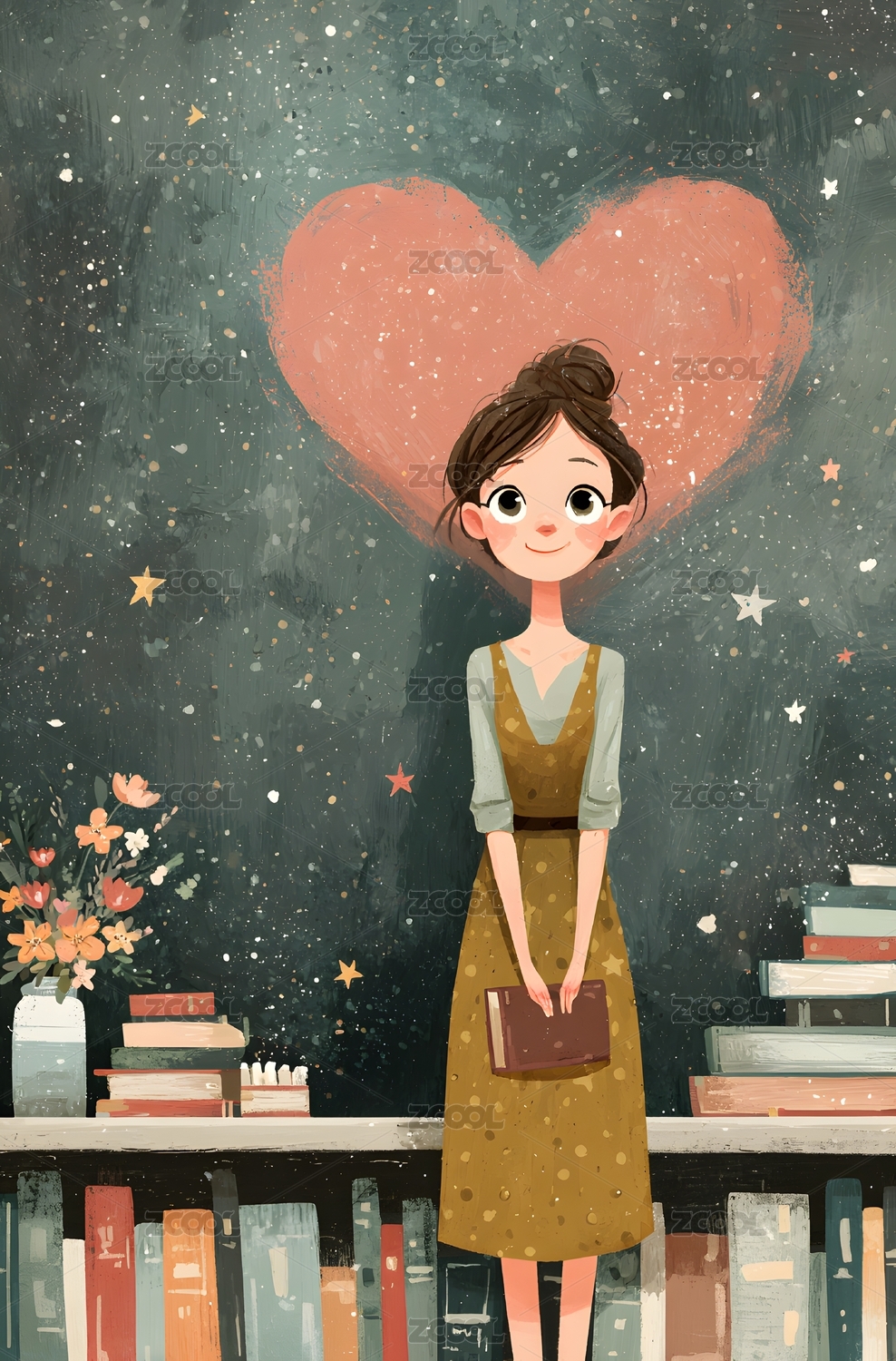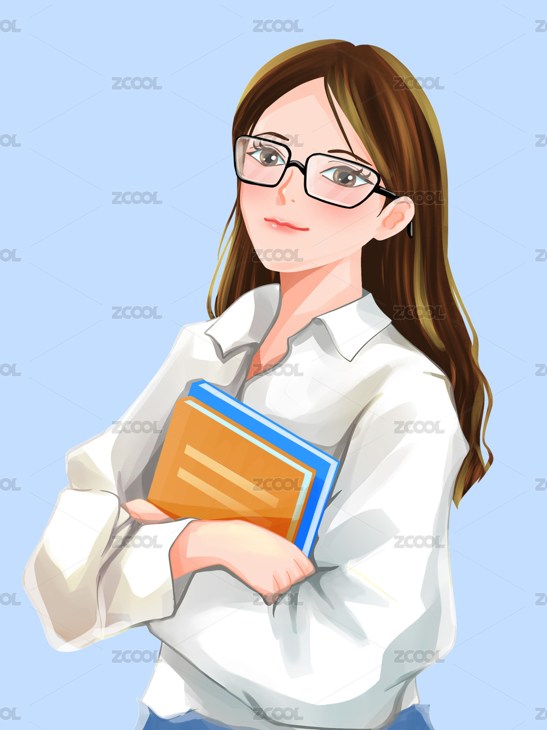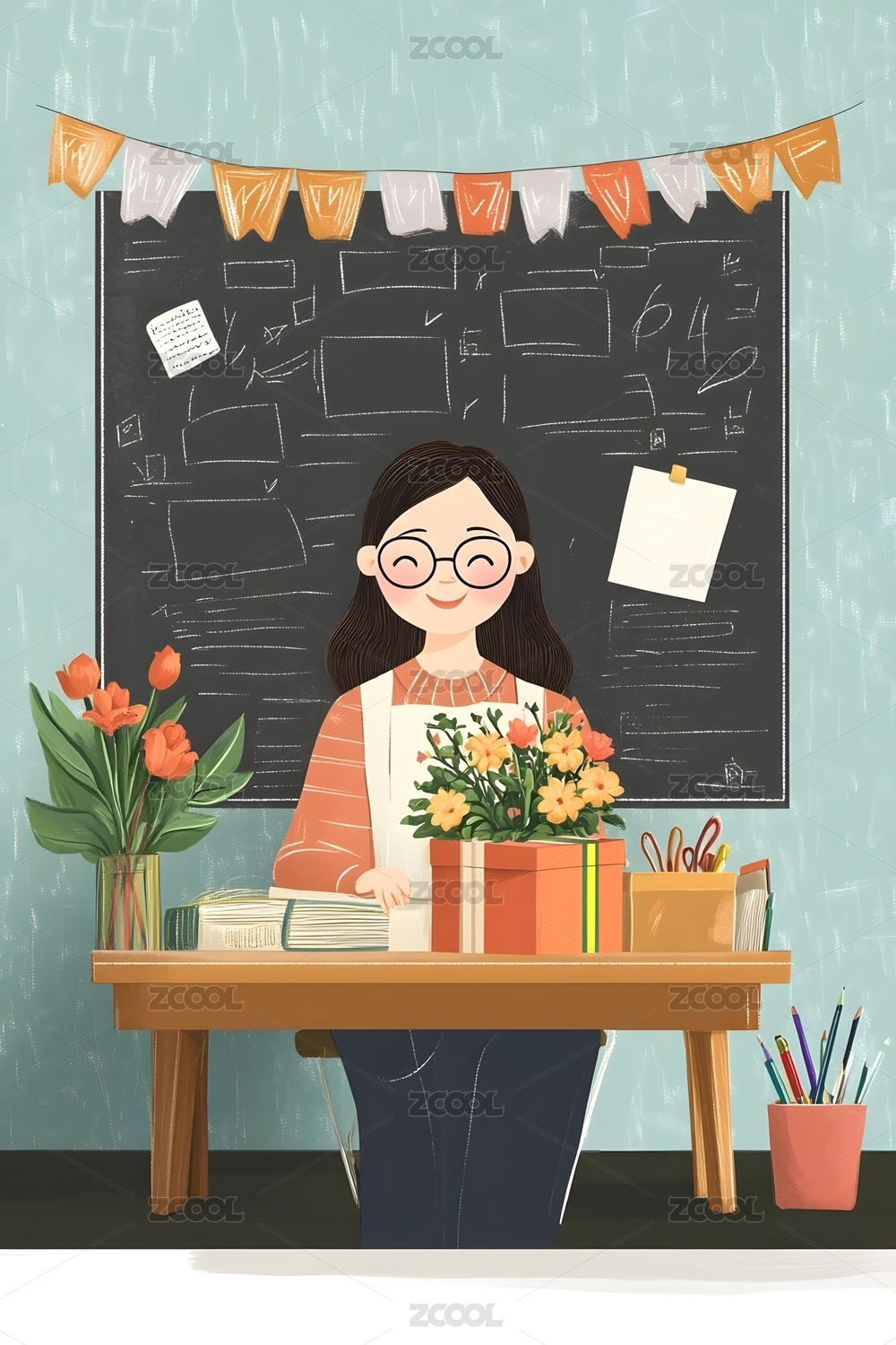 教师,老师卡通,烫发,黑板,中国女教师,英语老师,黄色T恤,戴眼镜,知识分子,教育工作者