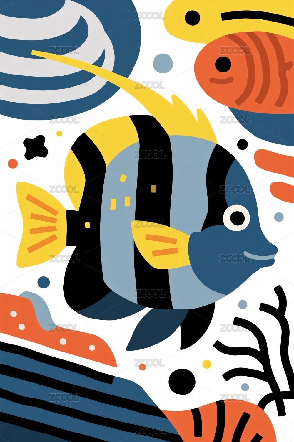 多彩海洋鱼插画