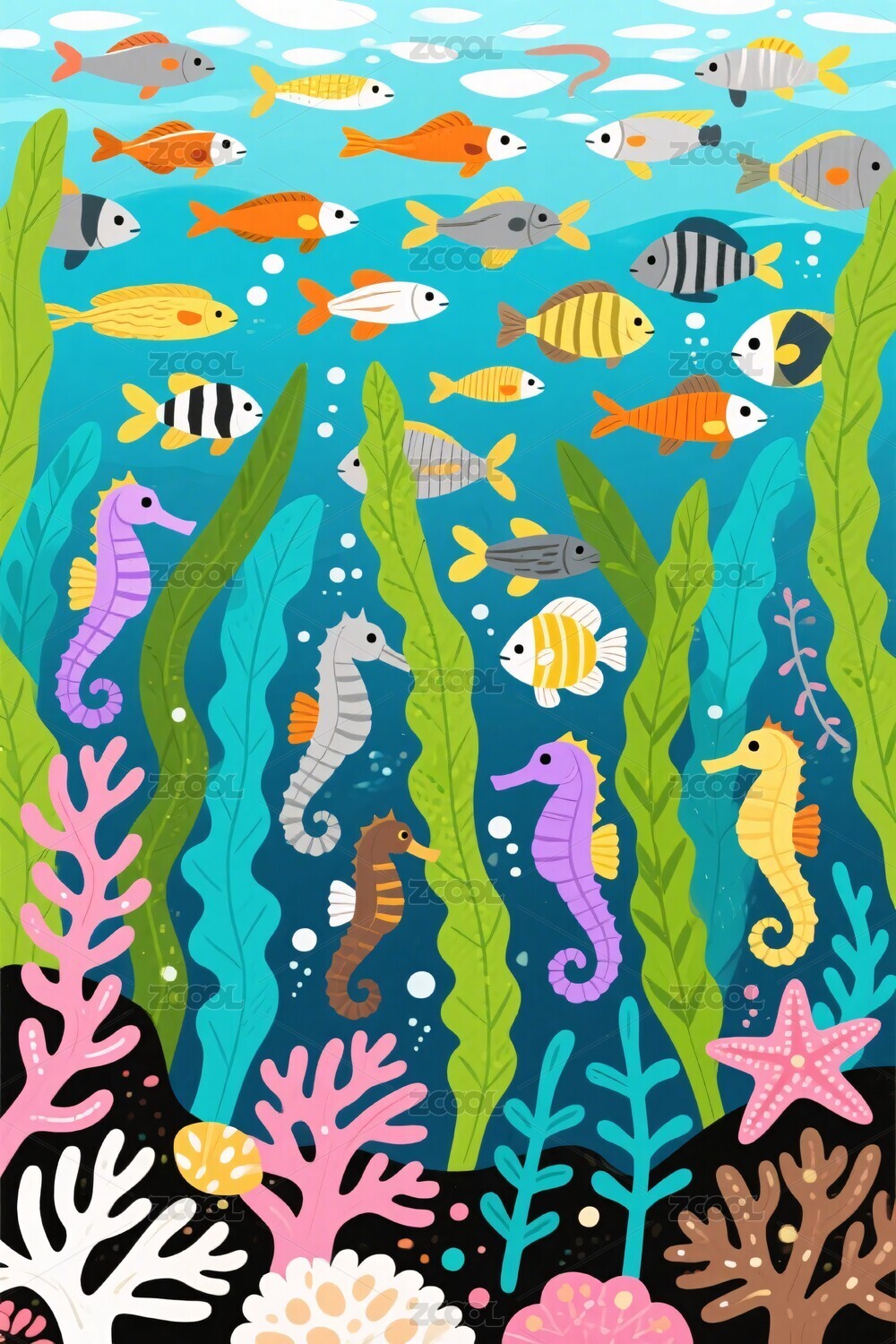 五彩缤纷的海洋世界插画