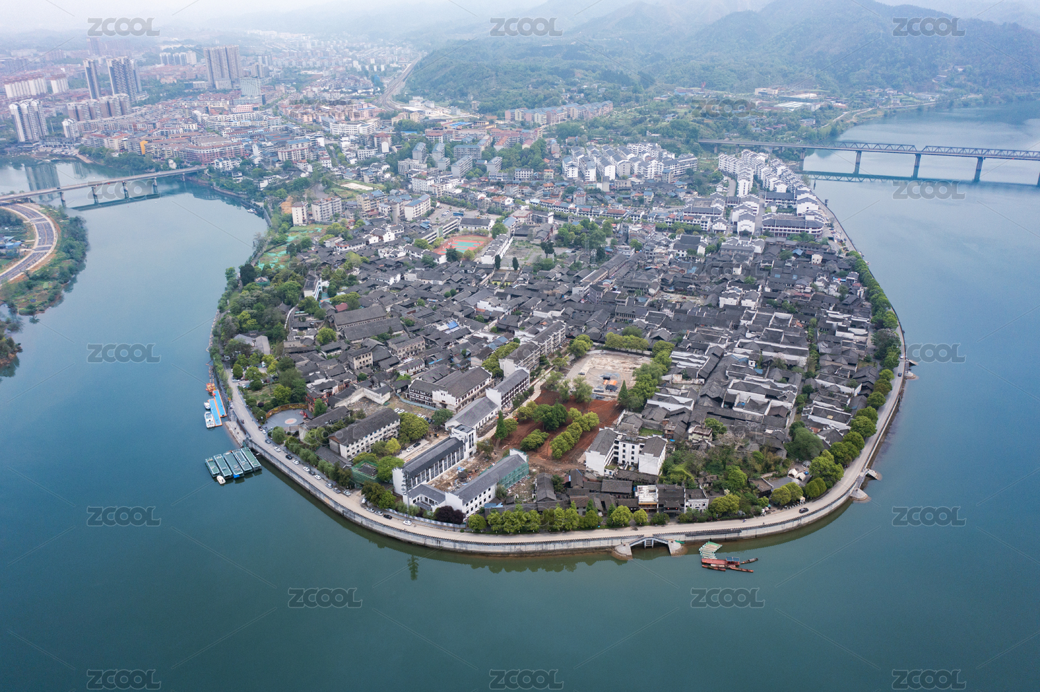 中国安徽省黄山市歙县鱼梁坝景区航拍