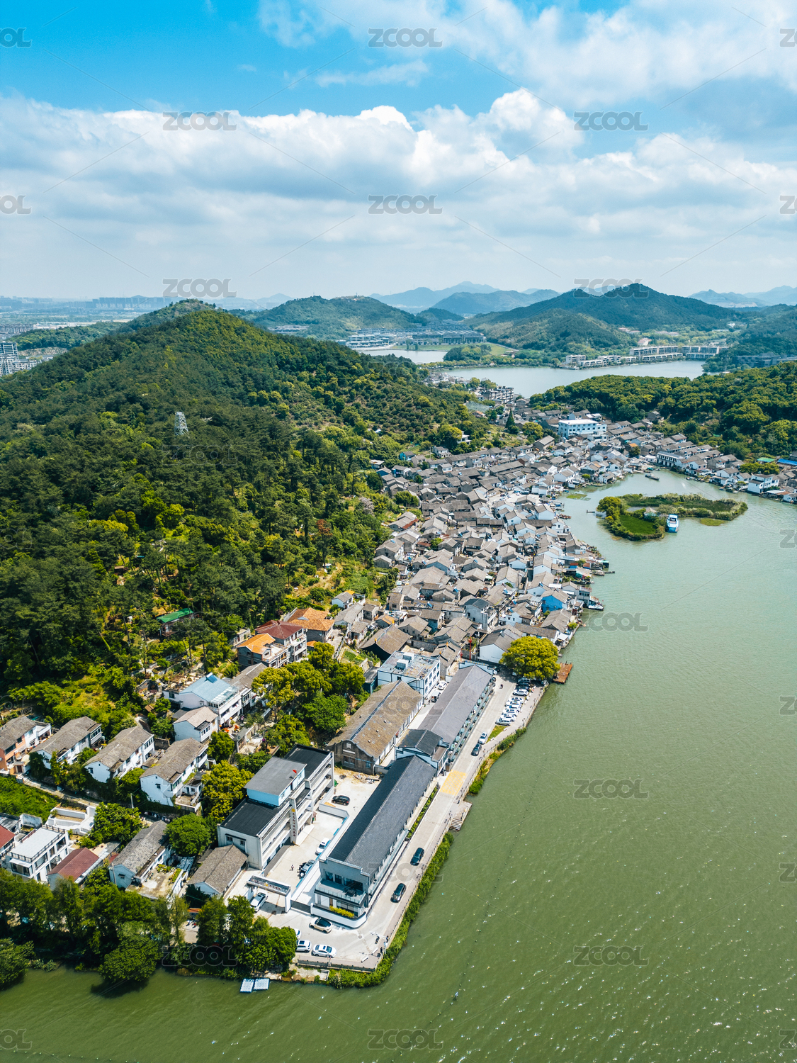 宁波东钱湖韩岭老街日落晚霞航拍景色