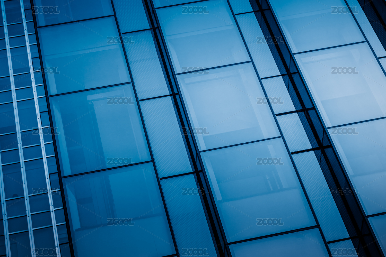 抽象的建筑摩天大楼的蓝色玻璃墙