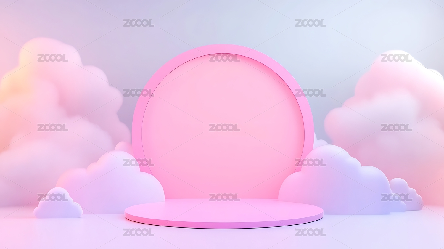 儿童节,展示台,可爱,温馨,产品摄影,童趣,云朵,圆形,展台,粉嫩