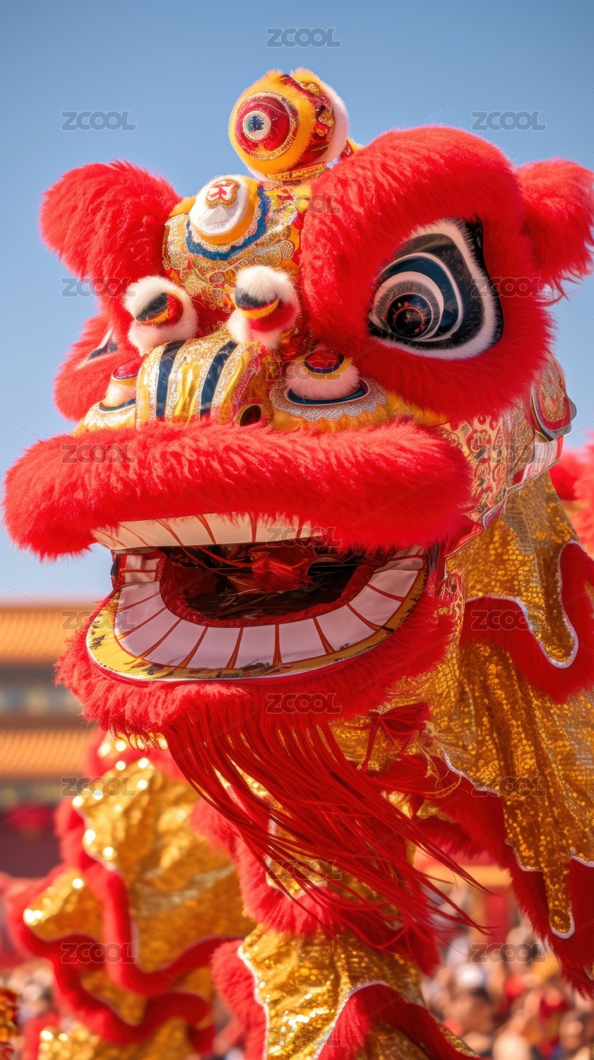 舞狮喜庆新年春节欢乐传统习俗节目非遗