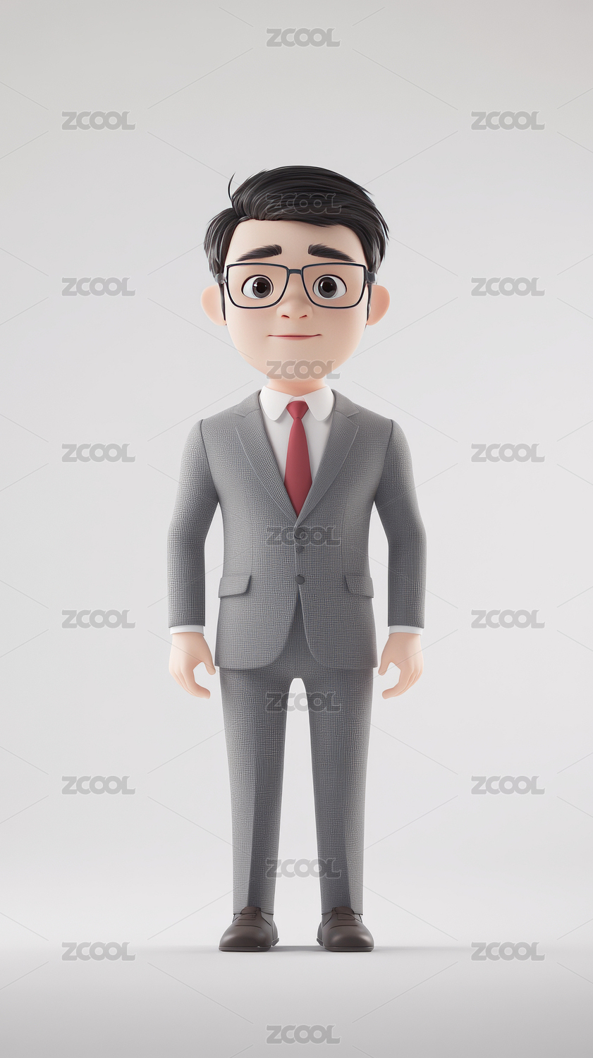 西装男职员在白板前汇报演讲的3d卡通站姿