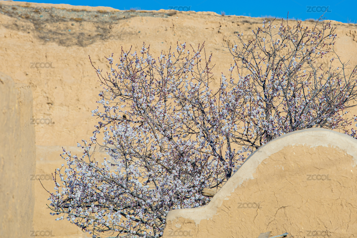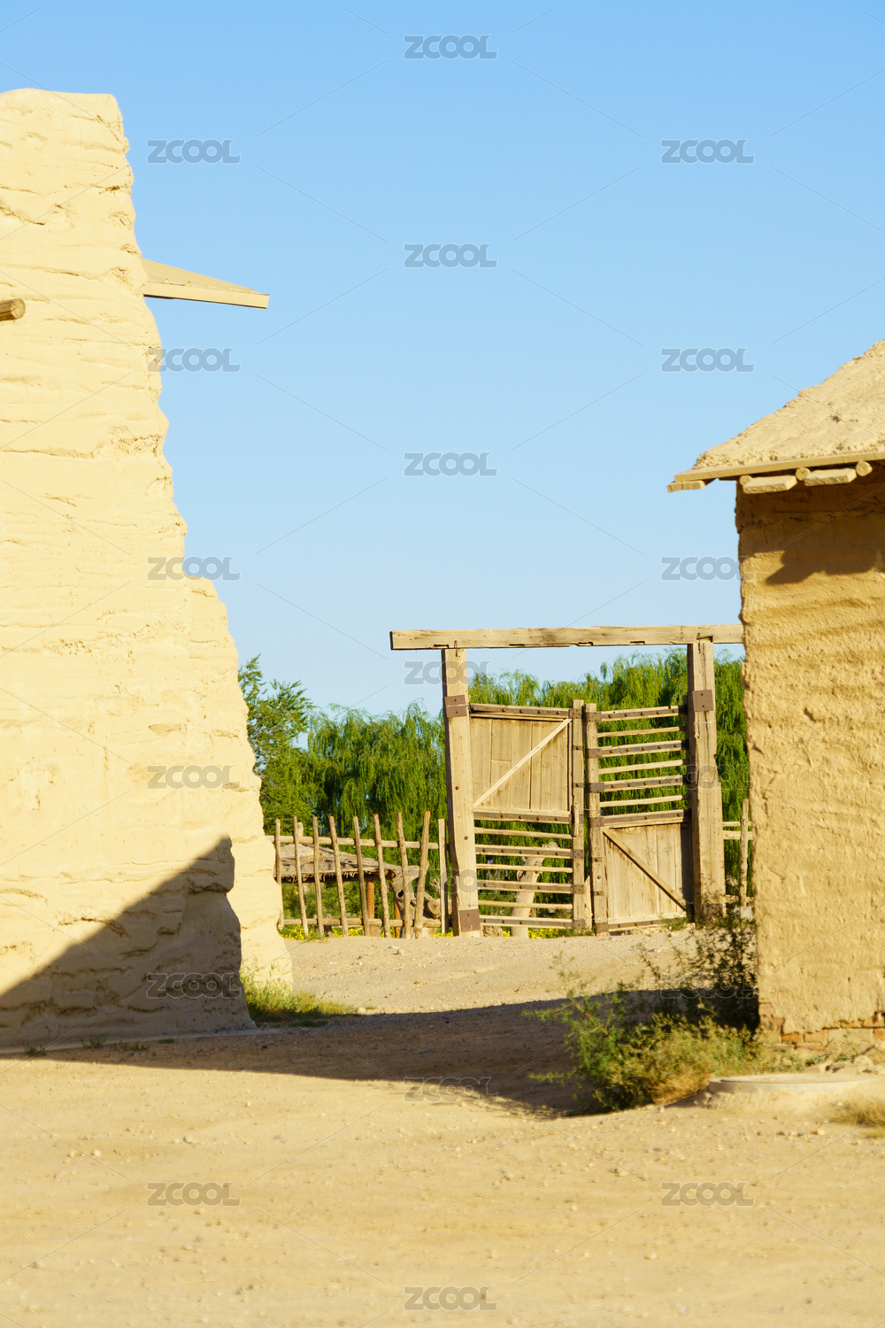 甘肃省白银市永泰古城-蓝天下植物与建筑合