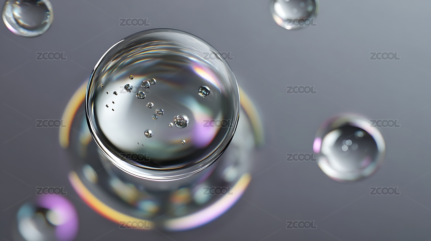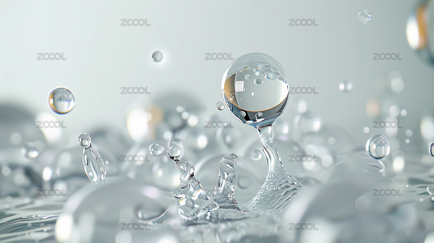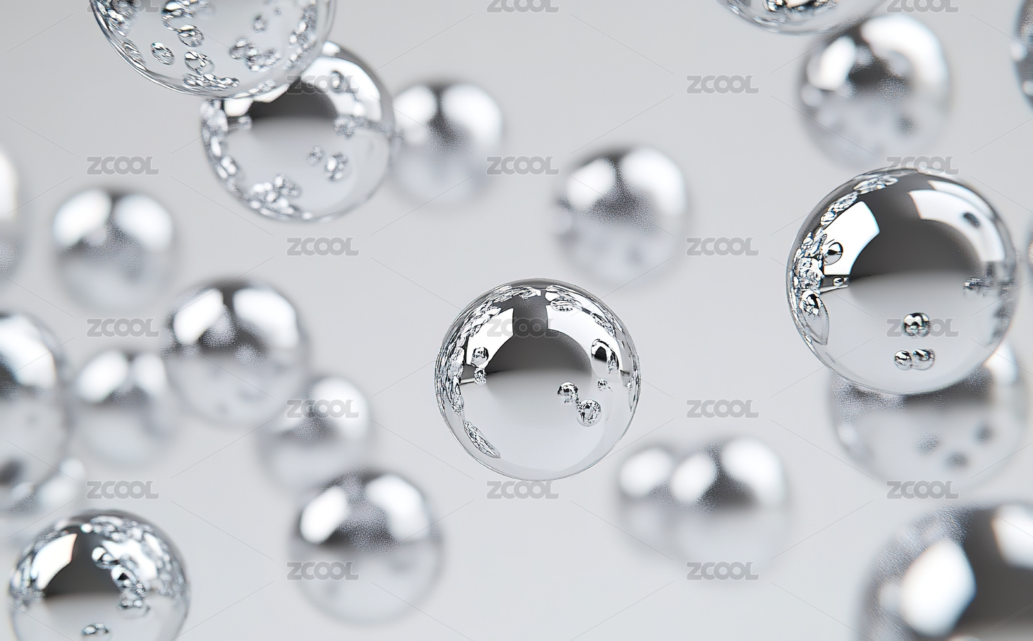 护肤精华水分子气泡浅色渐变背景,极简化学