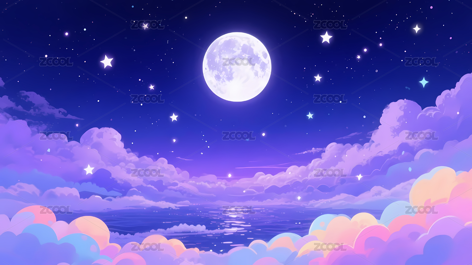 梦幻治愈云层夏天唯美天空云彩风景插画