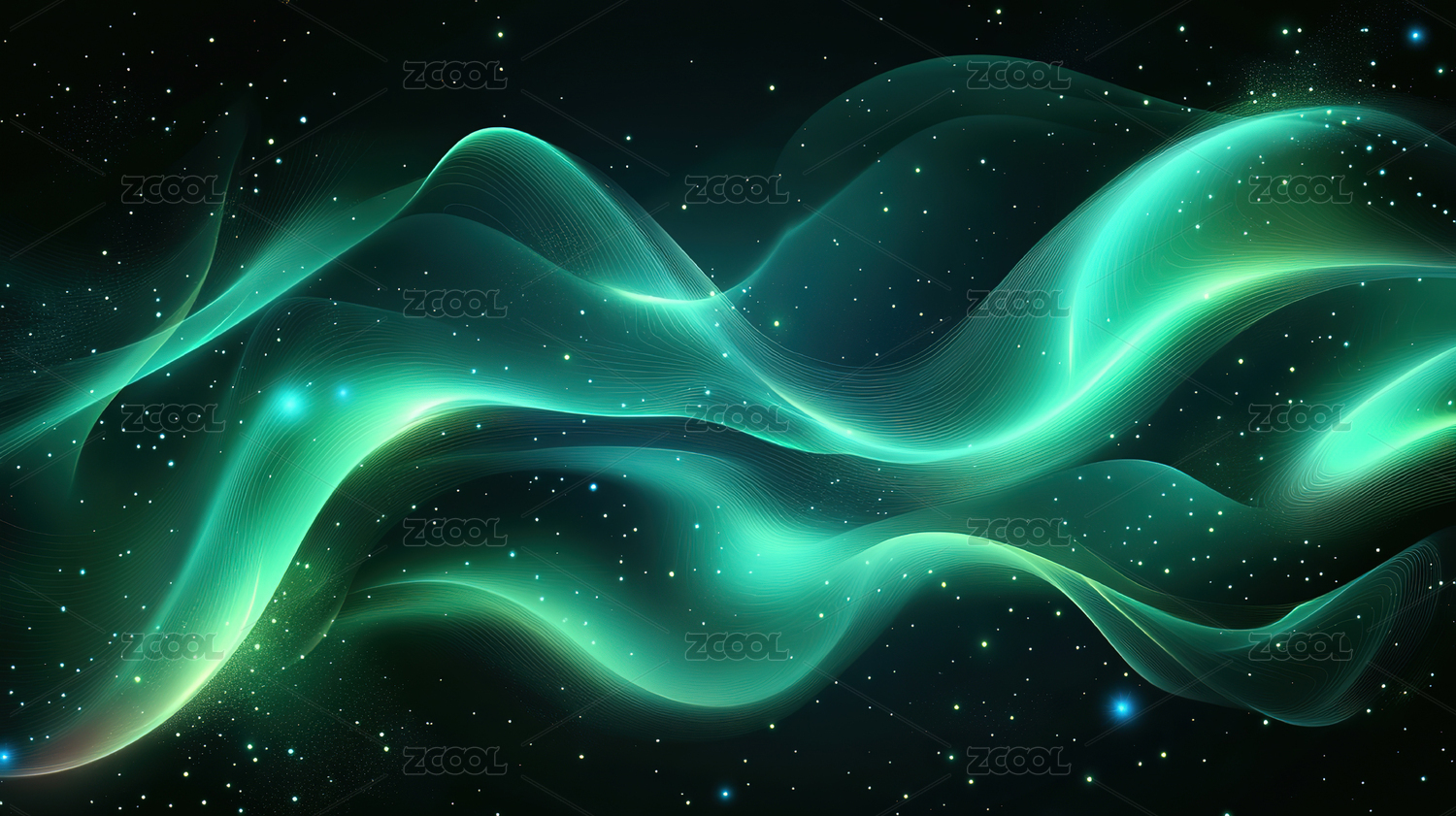 绿色未来感抽象波浪背景带有发光粒子