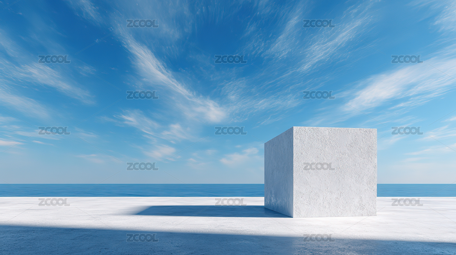 海边平台上的白色立方体