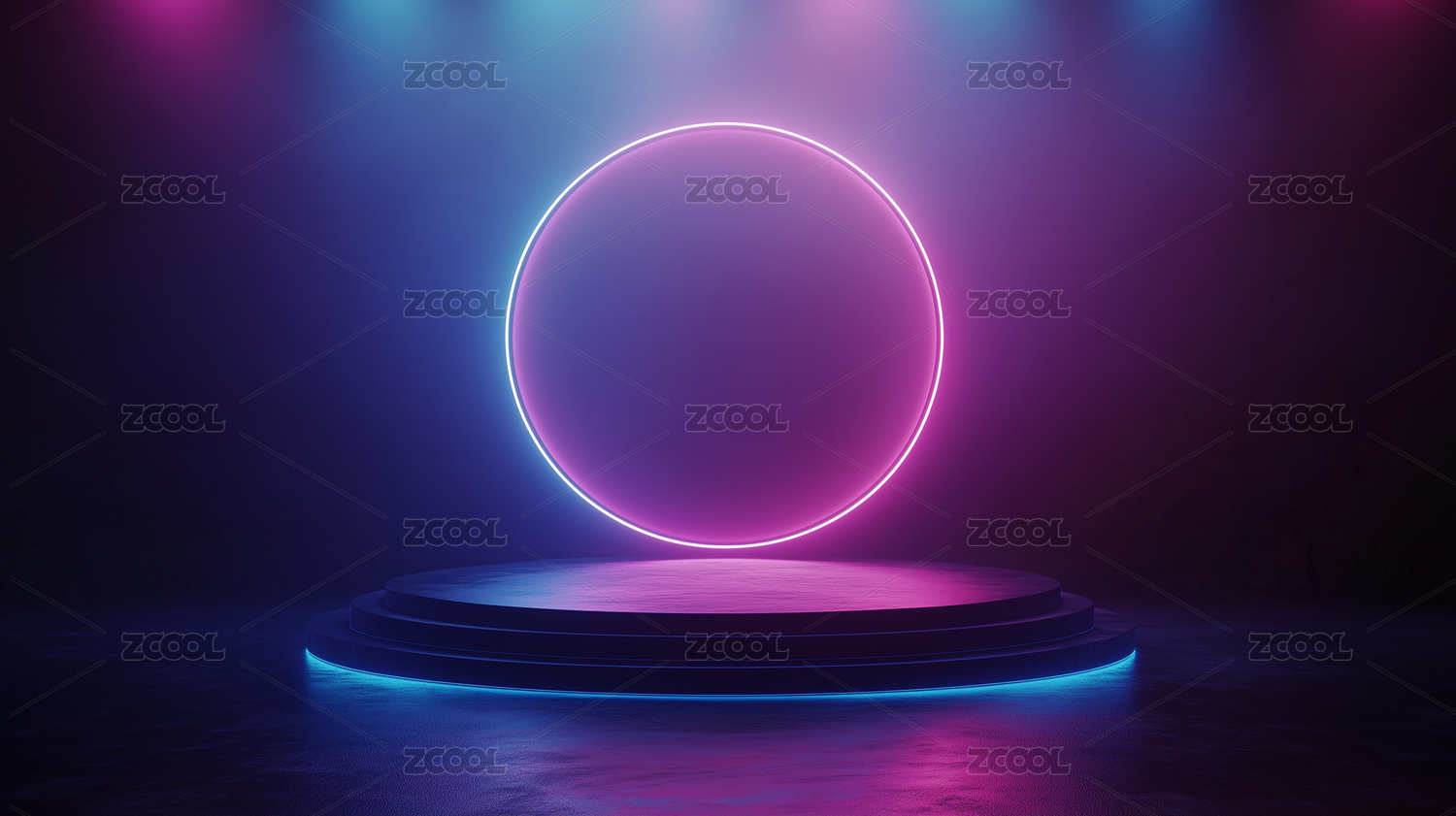 深蓝色紫色渐变圆形舞台讲台