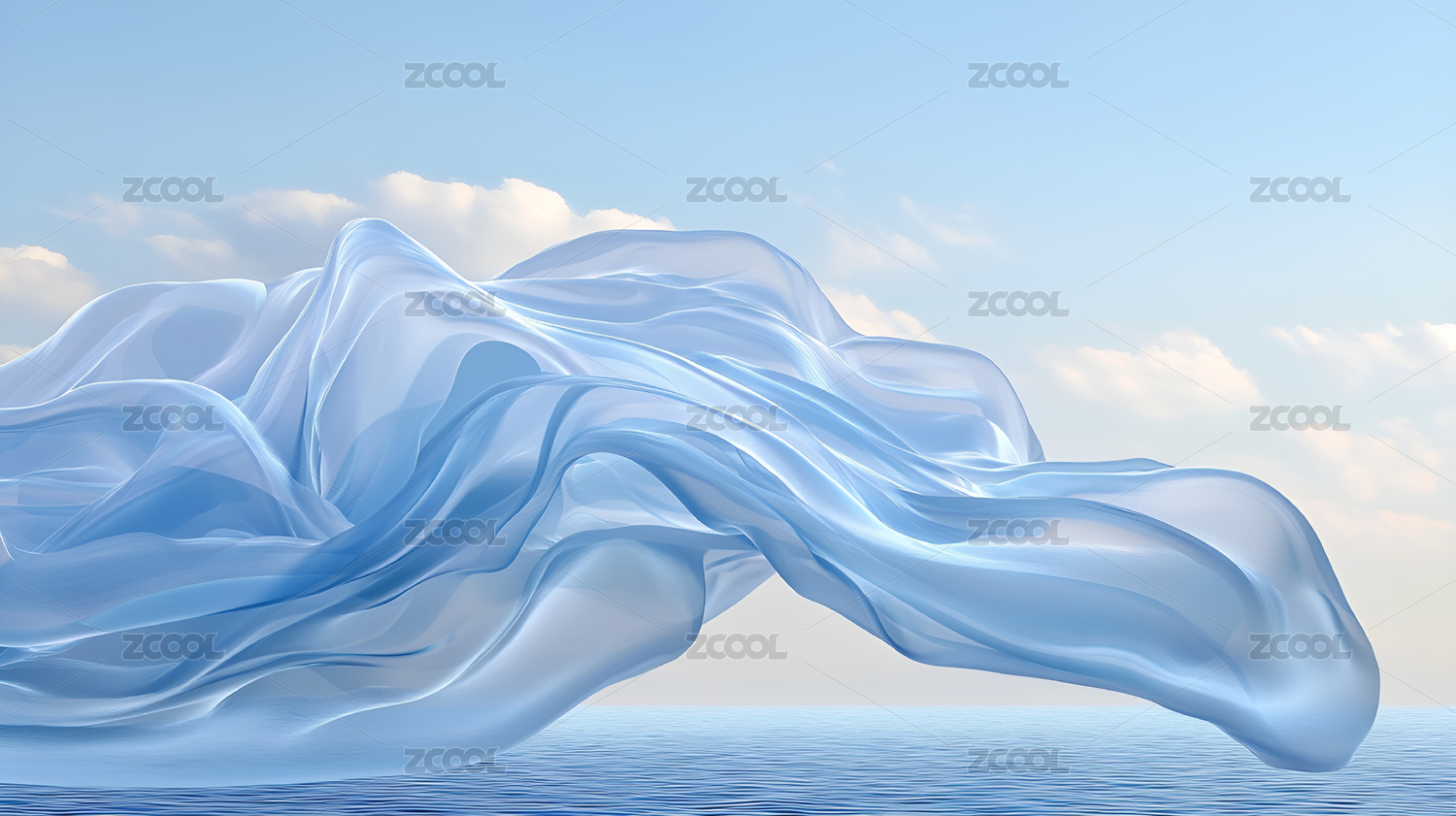 轻盈飘逸的蓝色丝绸梦幻背景图