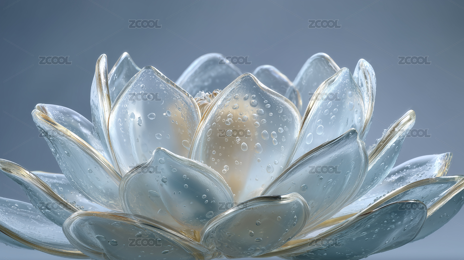 玻璃材质的荷花质感3D插画