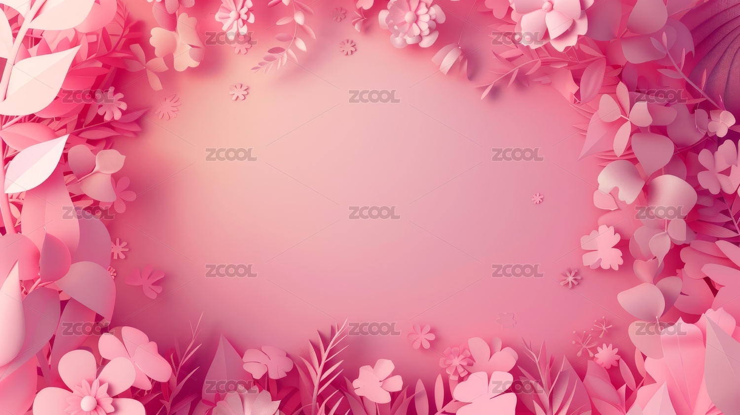 粉色水彩叶脉边框 浪漫花卉留白背景