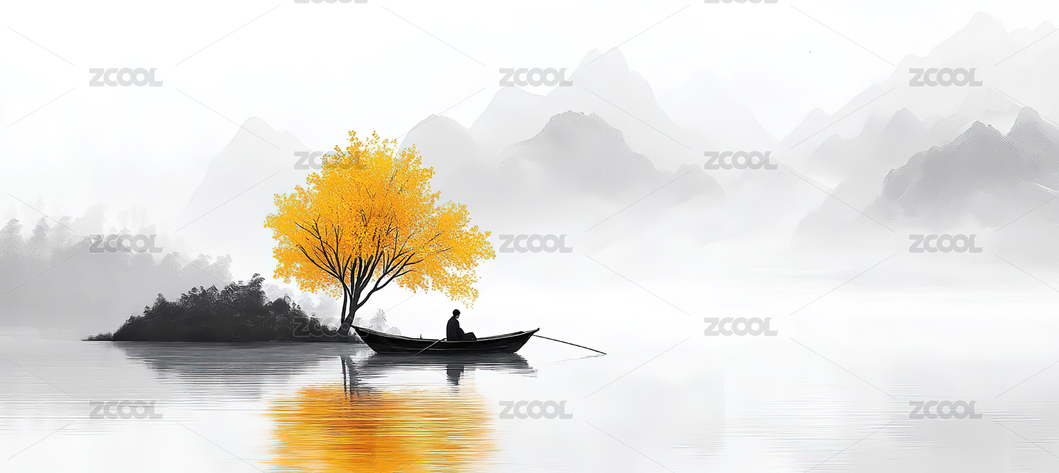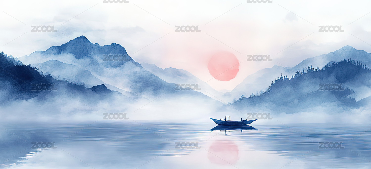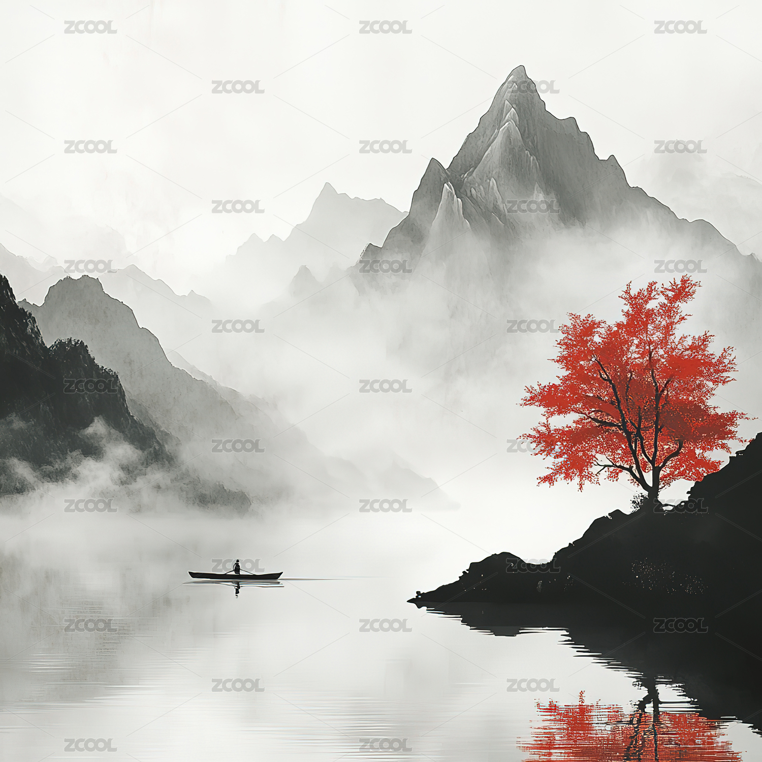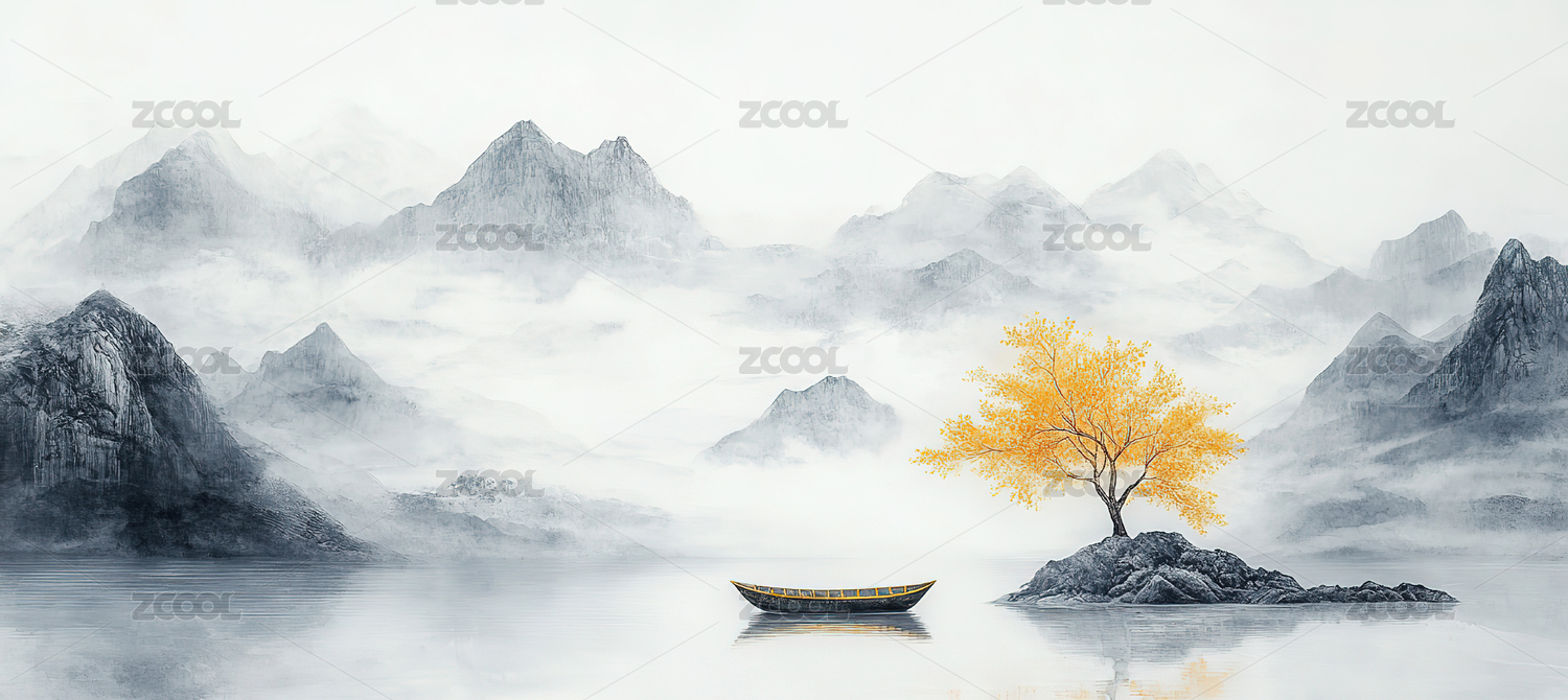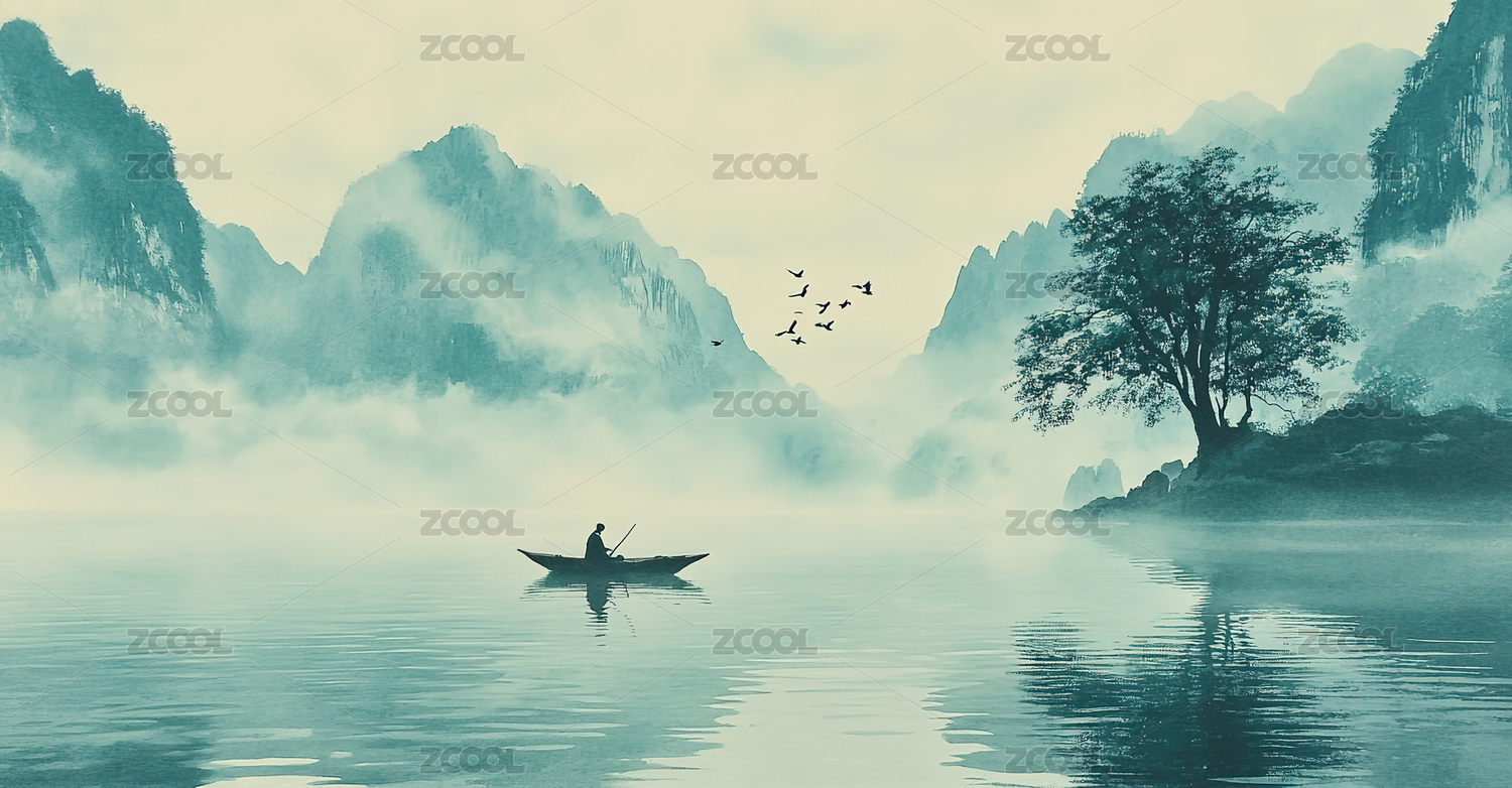 手绘中国风意境水墨山水风景画 淡雅意境水墨画