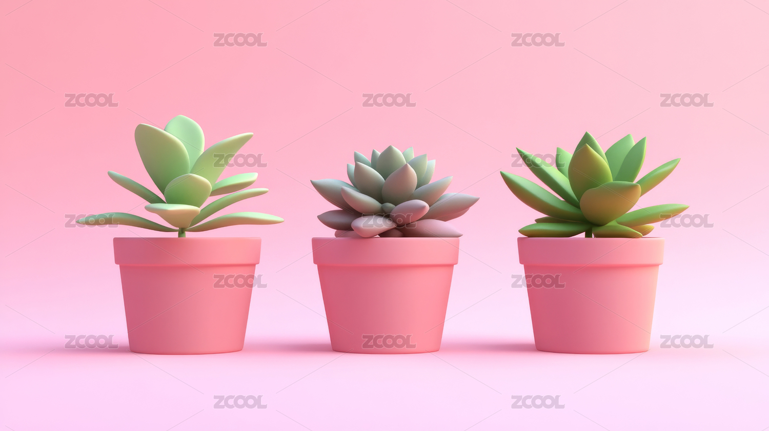 3D多肉盆栽植物插图