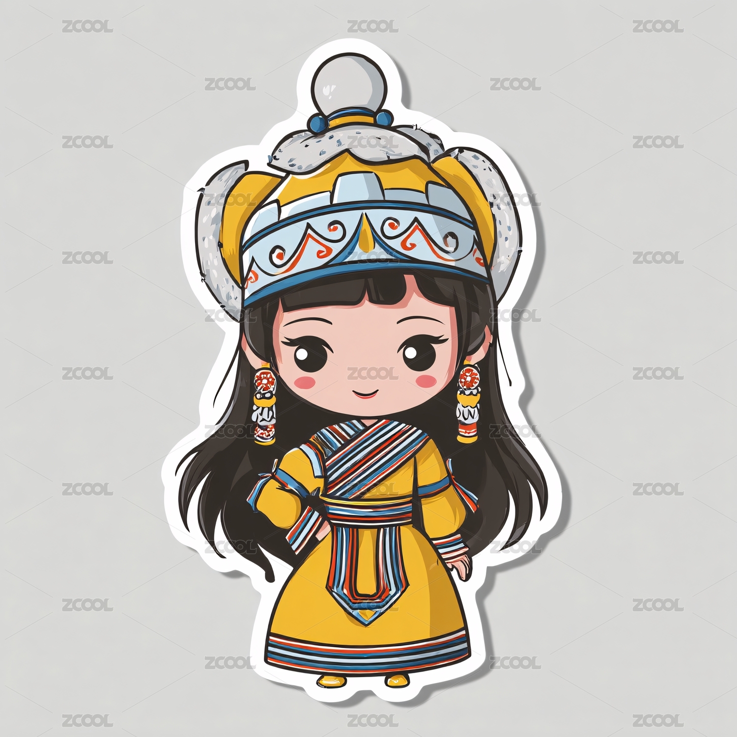蒙古族卡通女孩插画