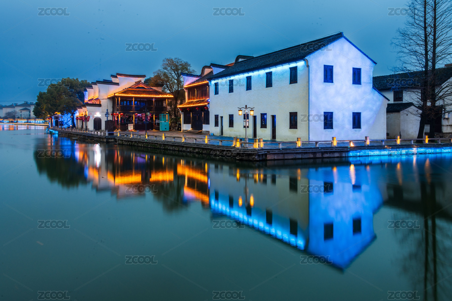 浙江嘉兴嘉善,新西塘越里古镇景区夜景