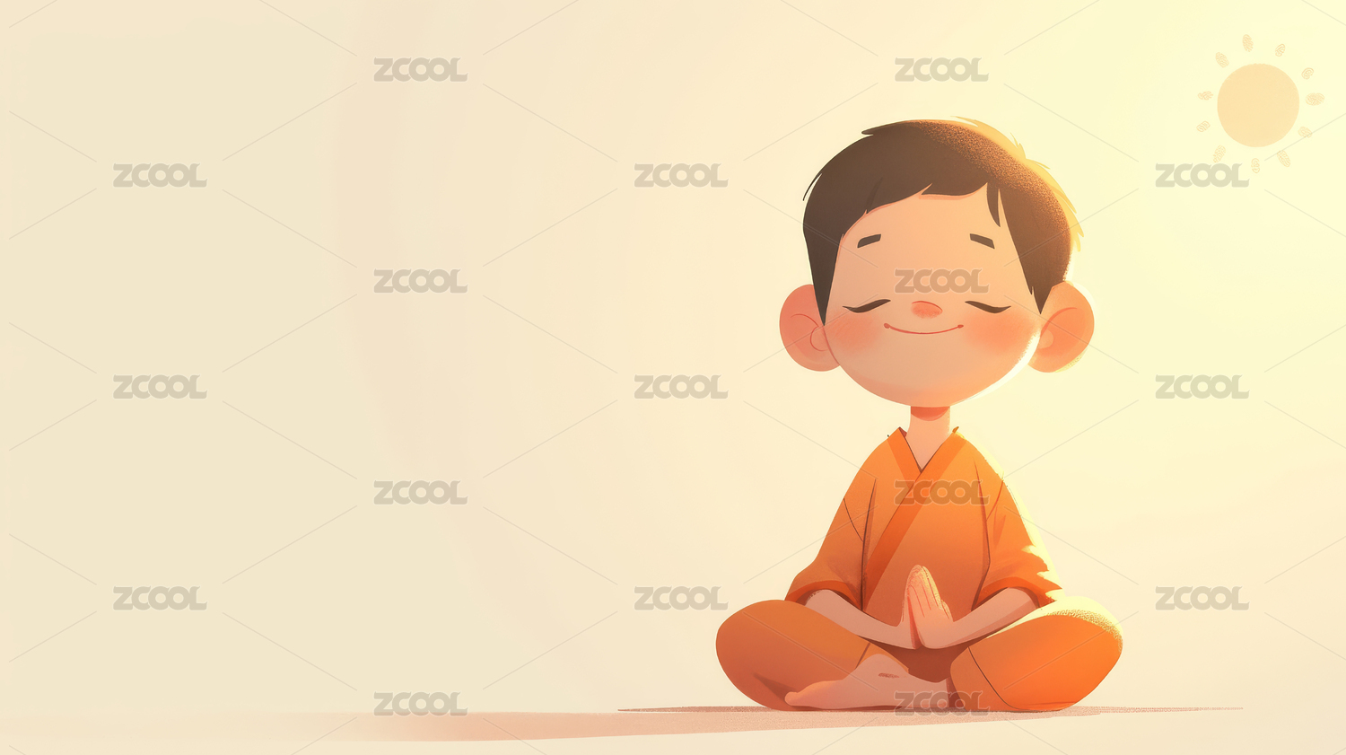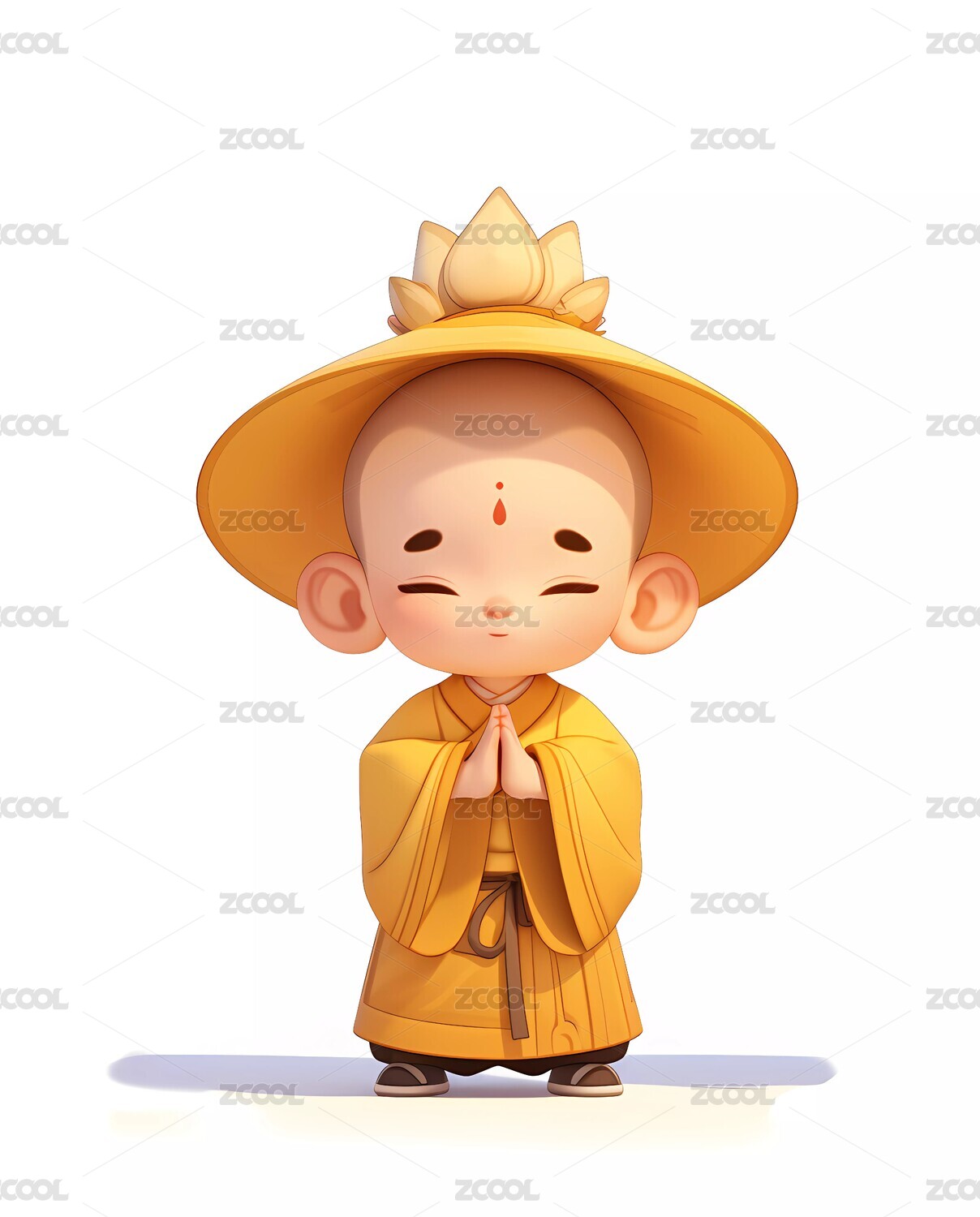 小和尚,和尚,莲花,荷花,佛家弟子,佛门,可爱,亚洲,q版,治愈