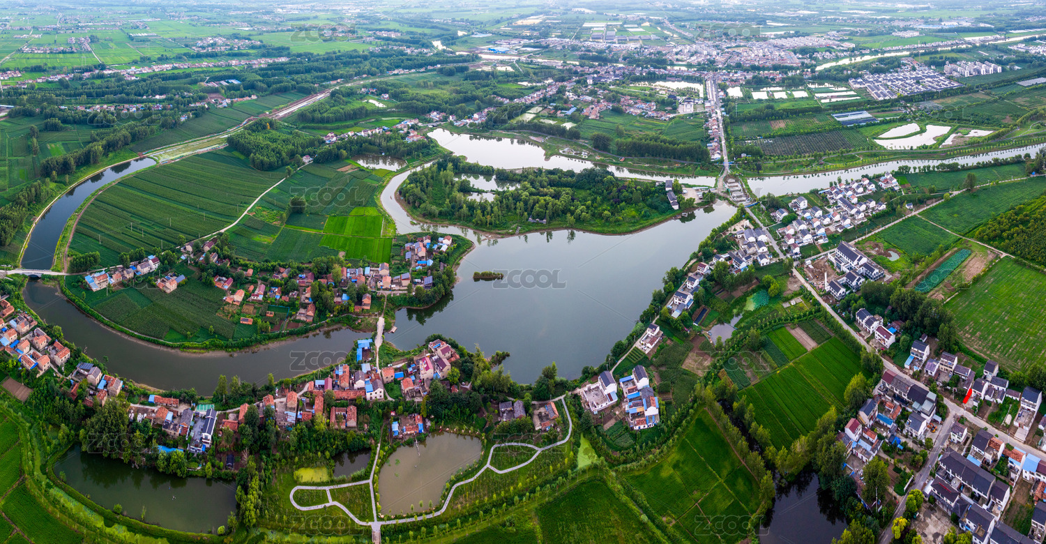 航拍中国安徽省宣城市初秋时节雨后田园风光