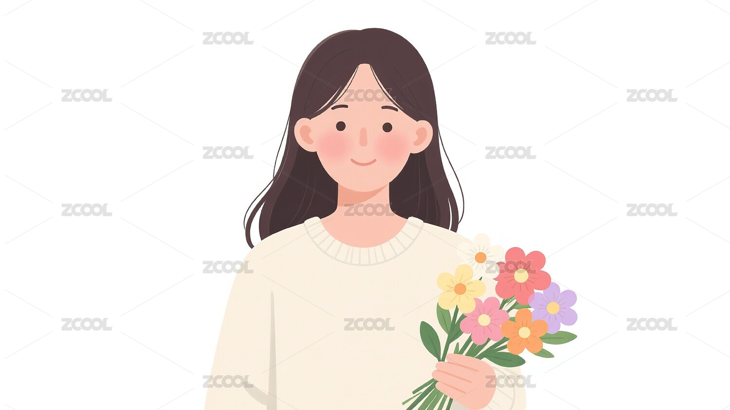 收到鲜花花束的女孩洋冒着爱心泡泡