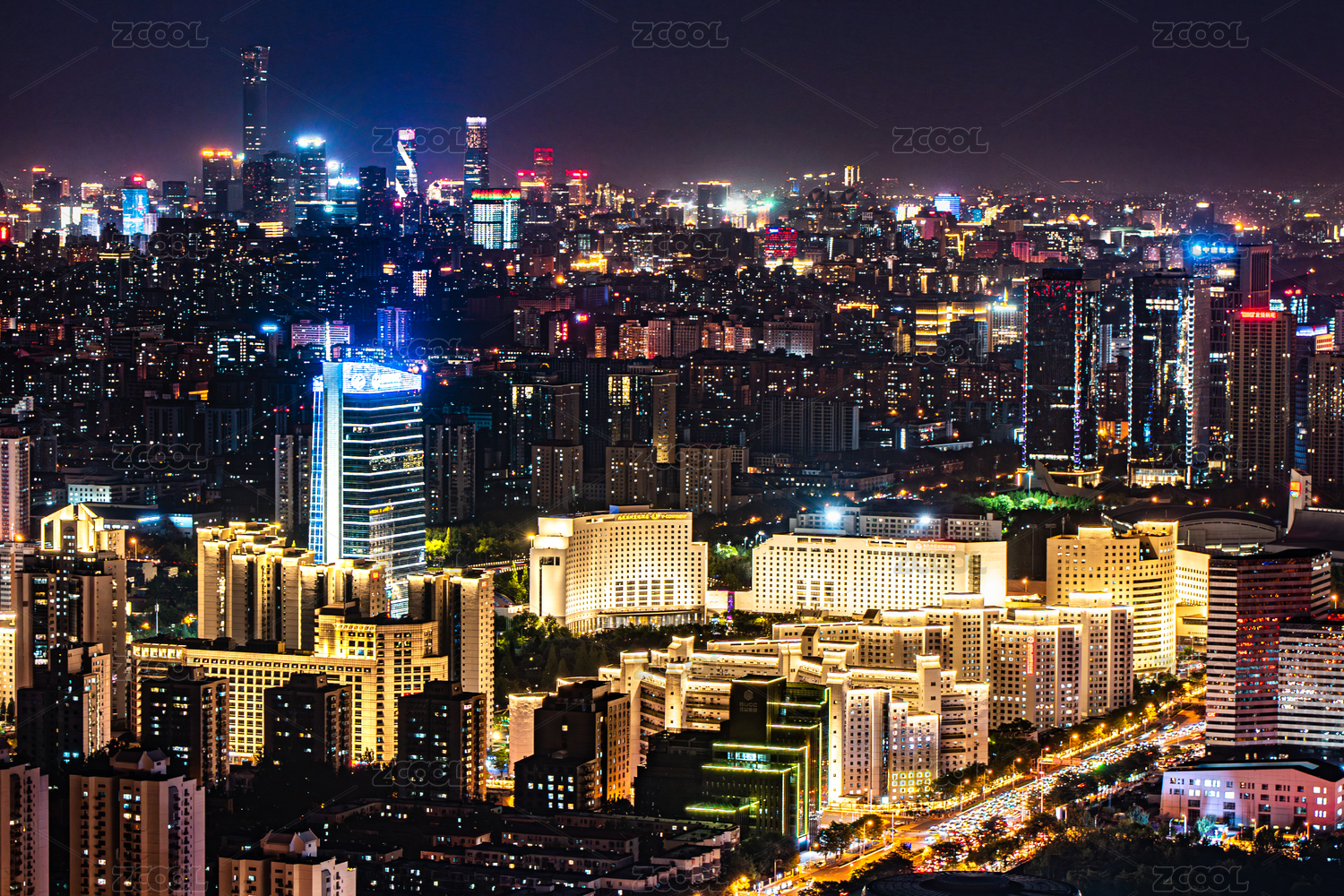 傍晚日落后的南京城市中心新街口摩天大楼天际线