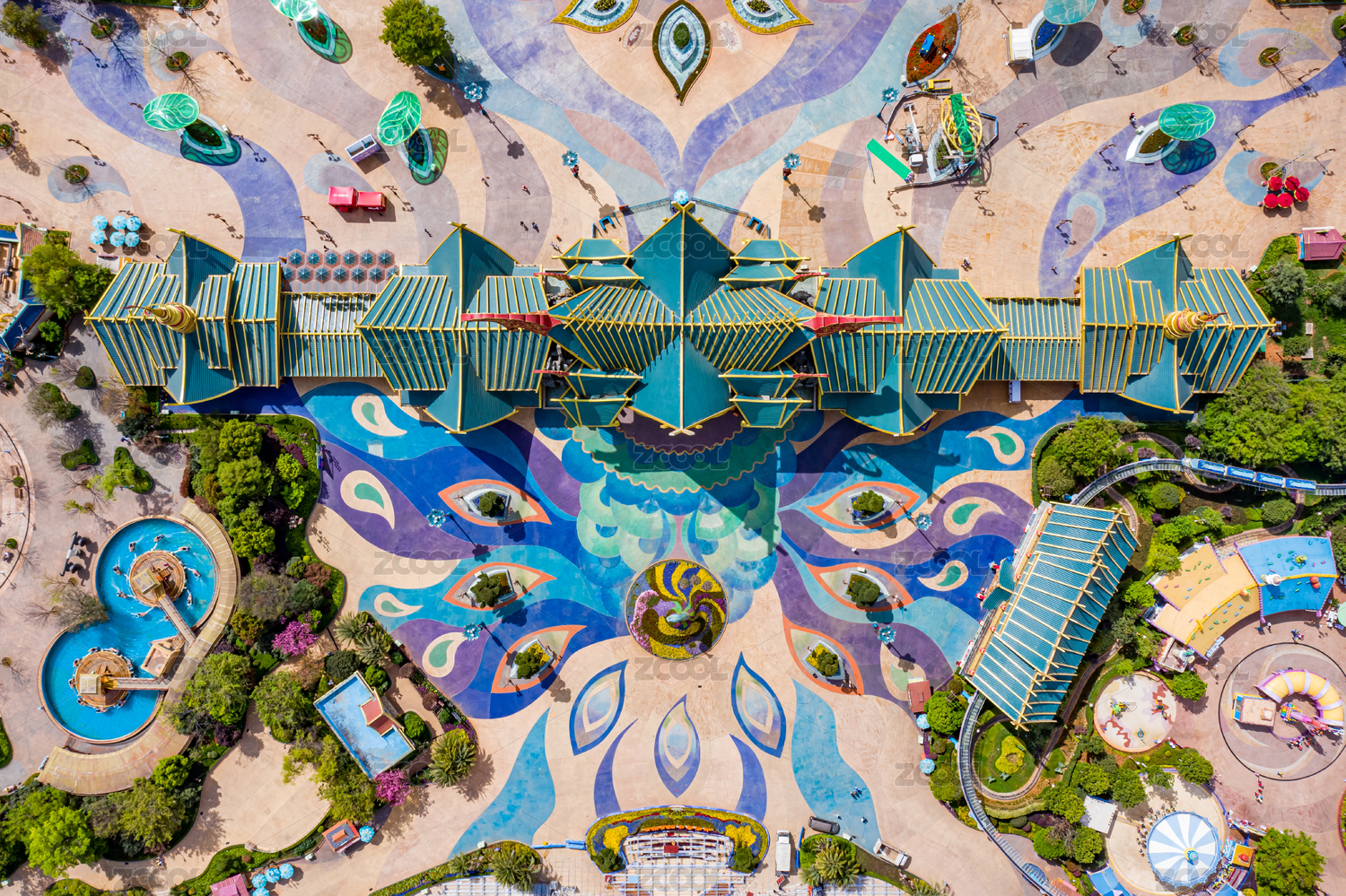 云南,昆明,七彩云南欢乐世界,主题乐园,游乐园,游乐场,航拍,高视角,俯拍,无人机航拍图