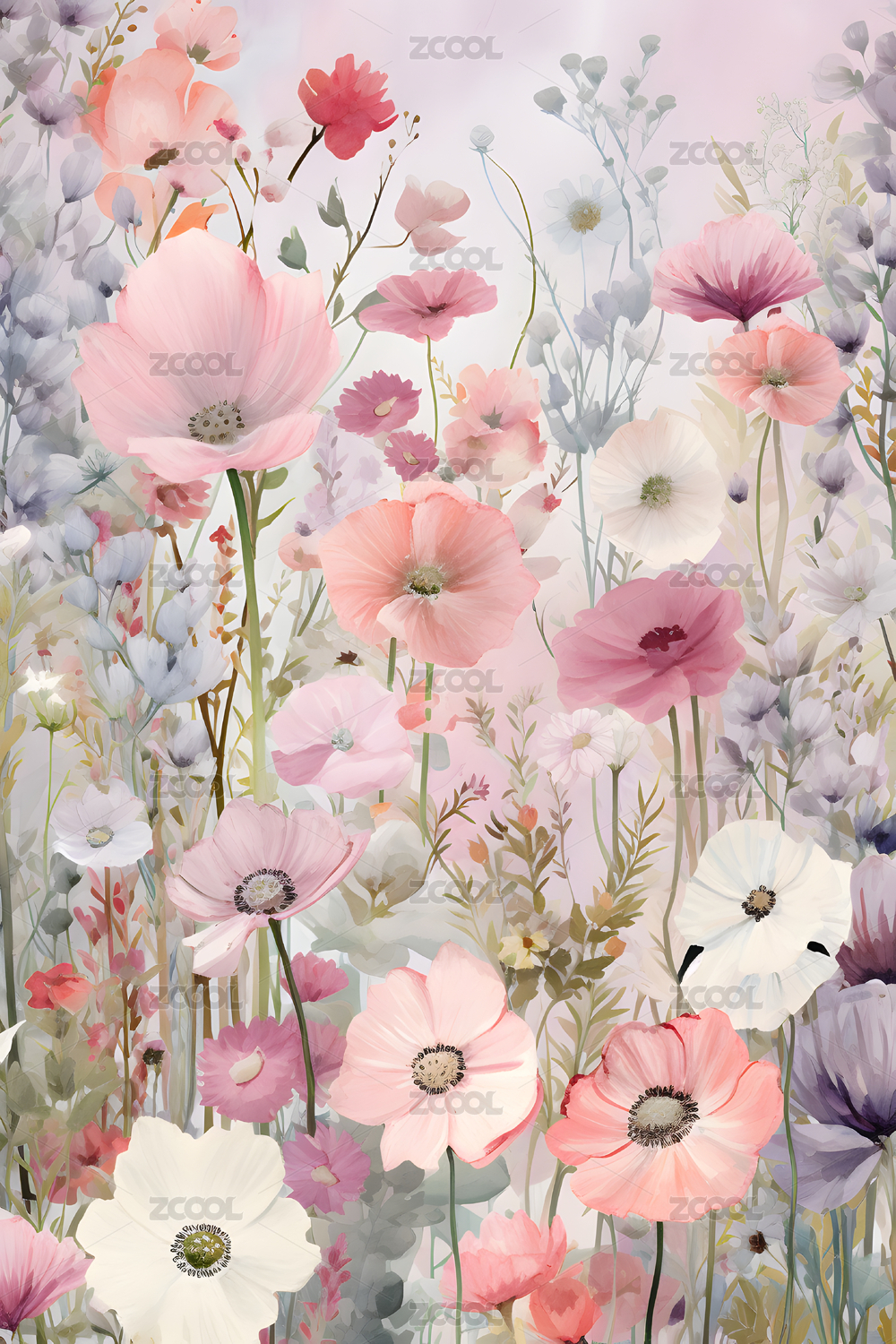 数码复古彩色梦幻花朵装饰抽象海报背景