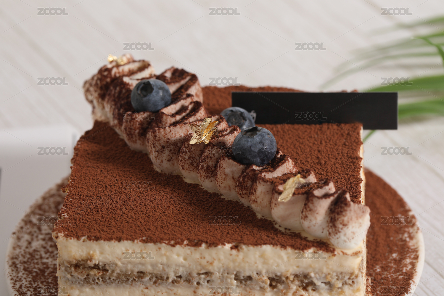 美味的下午茶蓝莓蛋糕放在黄色的碟子中