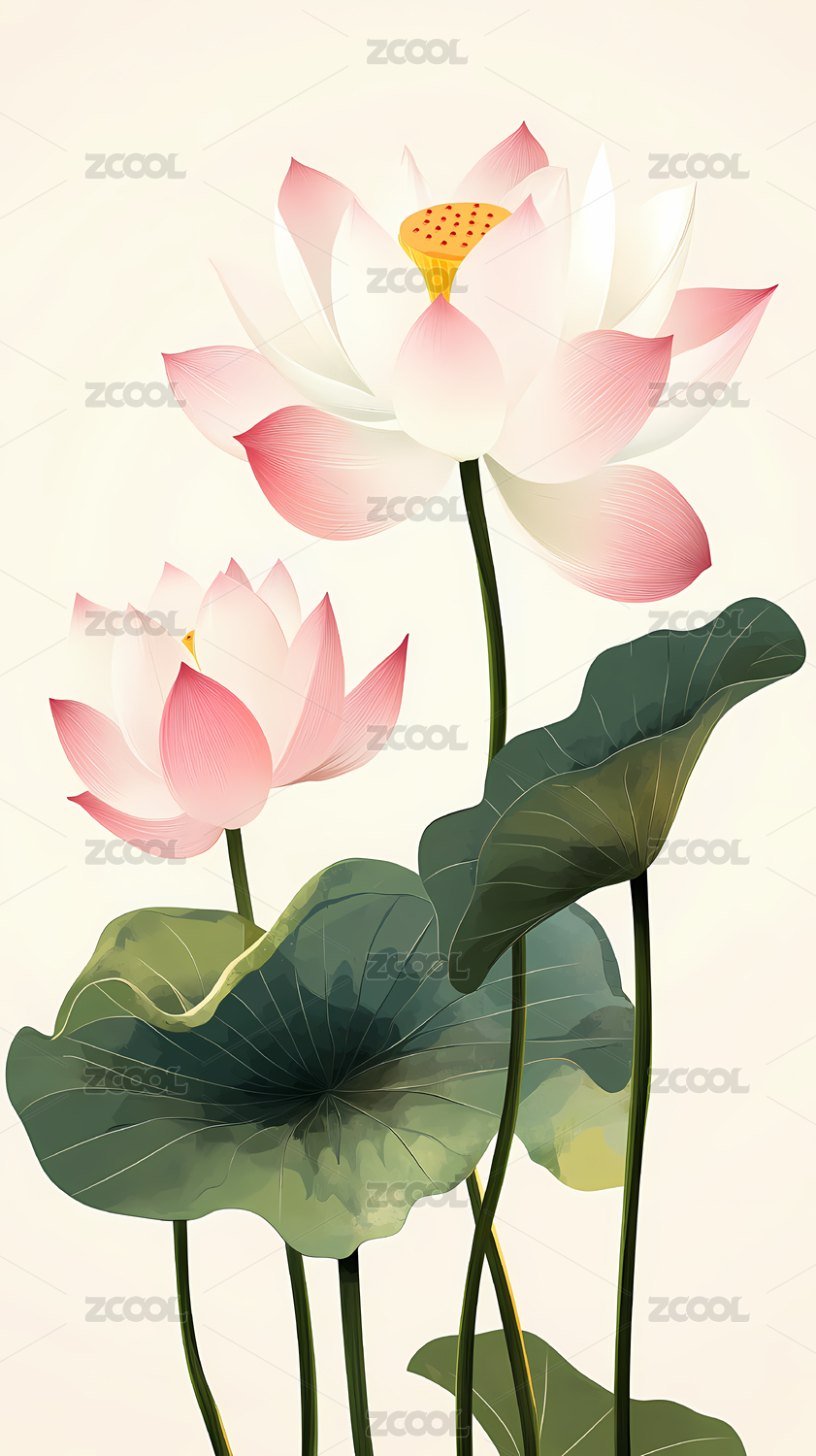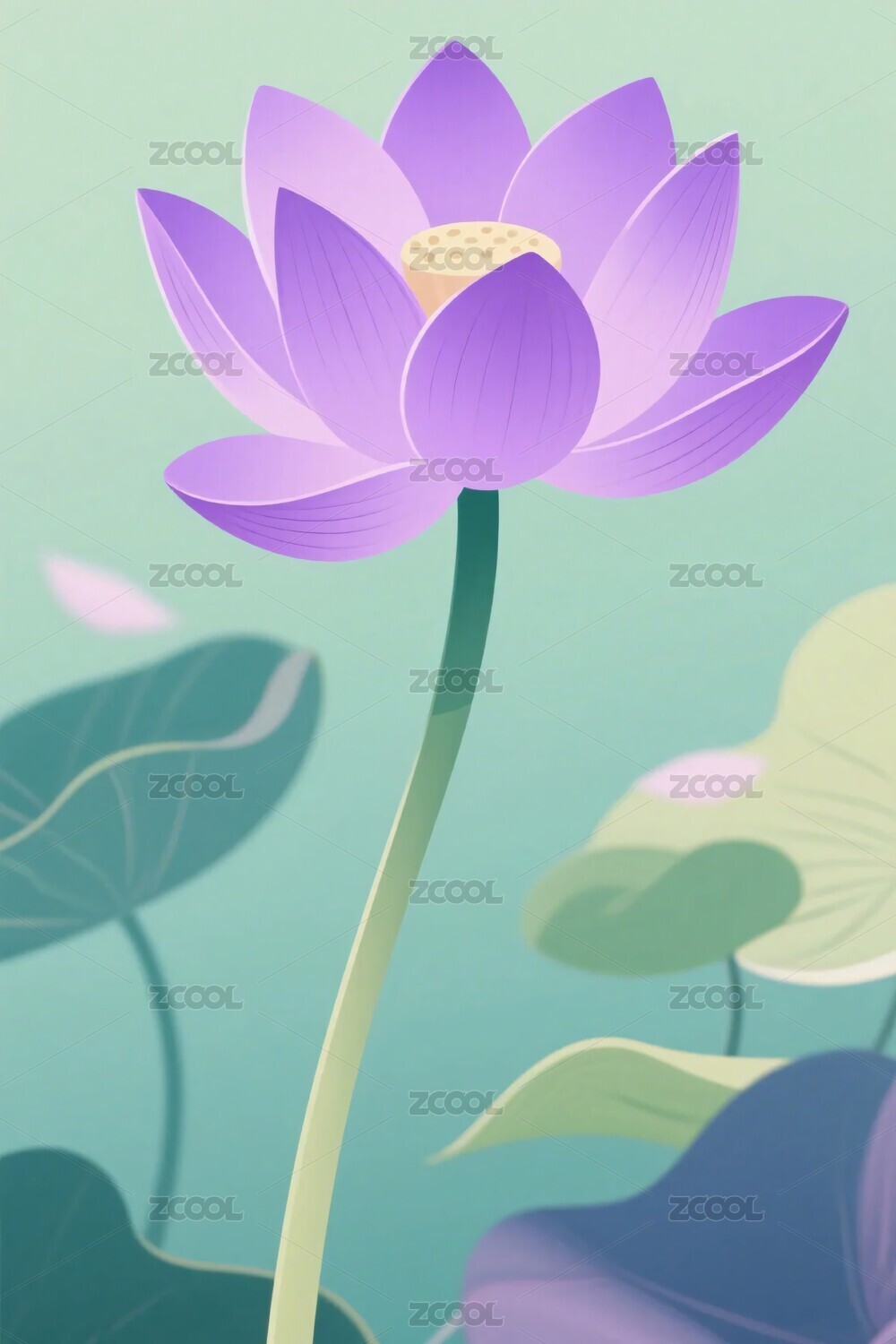 立夏节气荷叶3D夏天池塘荷花盛开小暑插画