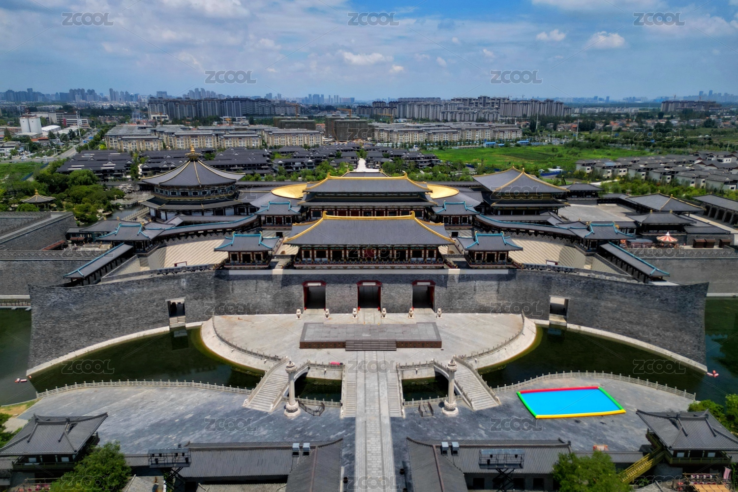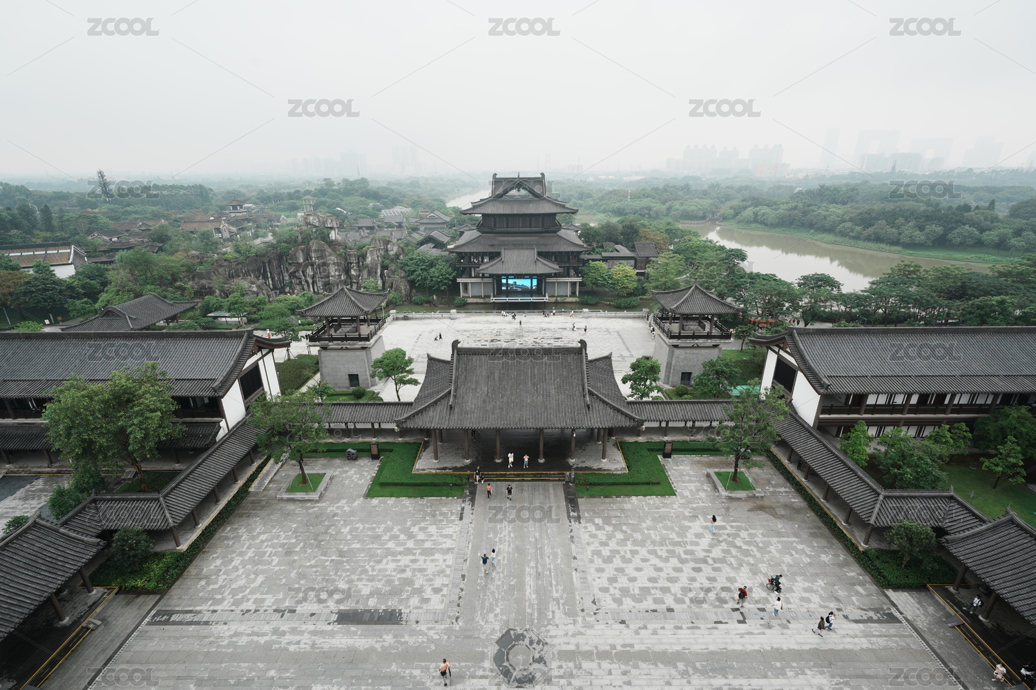 广州市文化馆中式传统建筑与海珠湖公园夕阳
