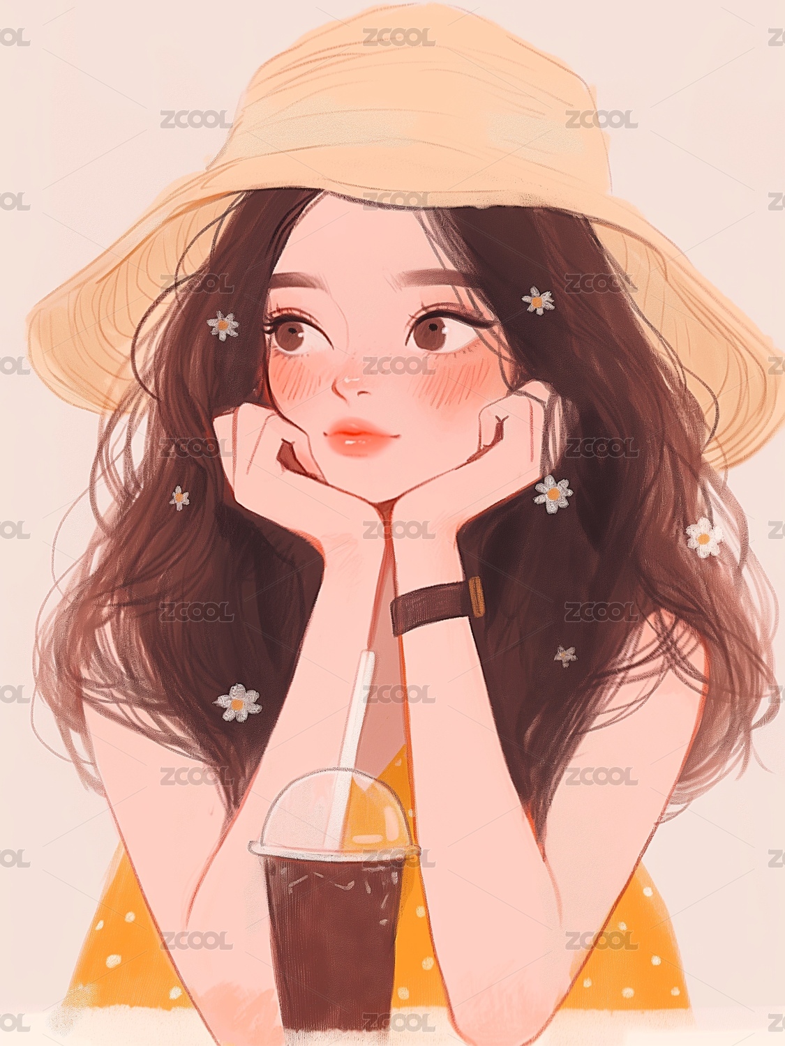 手拿一杯牛奶的女孩插画