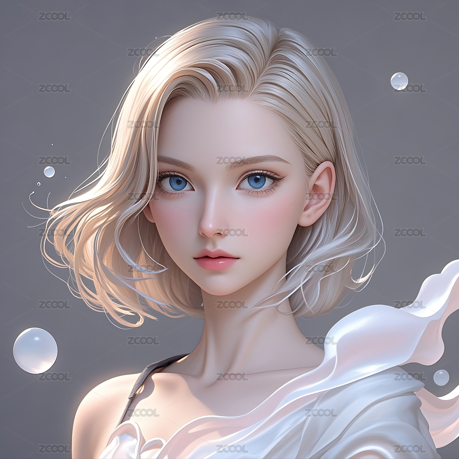 白发蓝眸少女画像