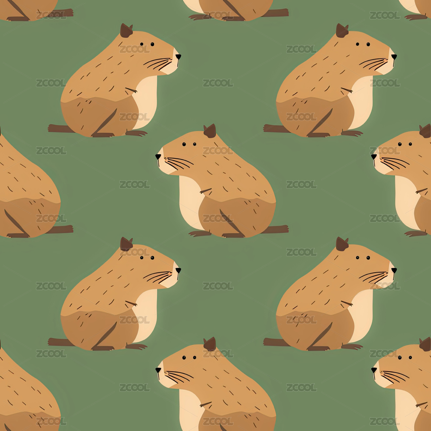 水豚图案无缝拼接背景