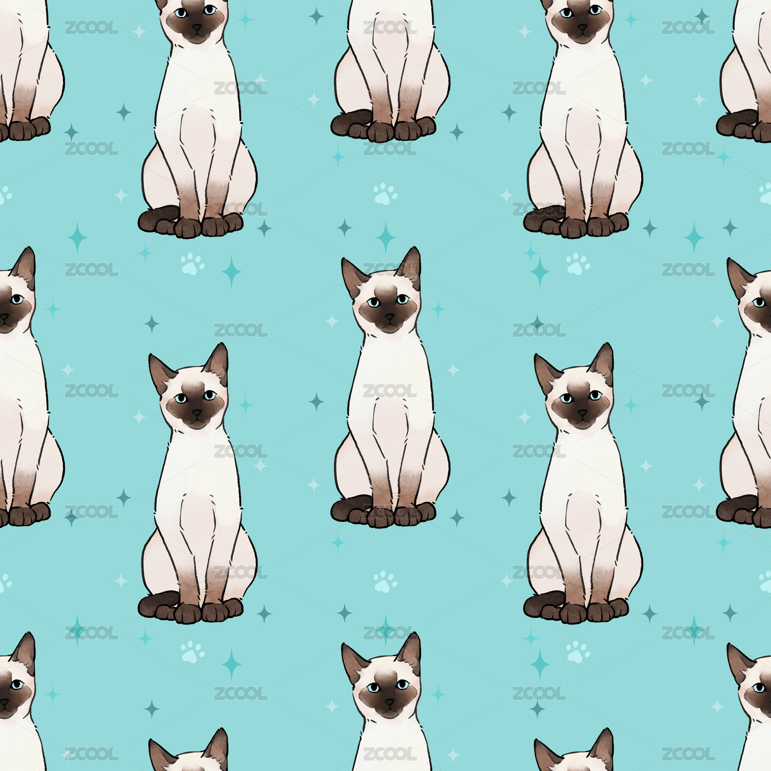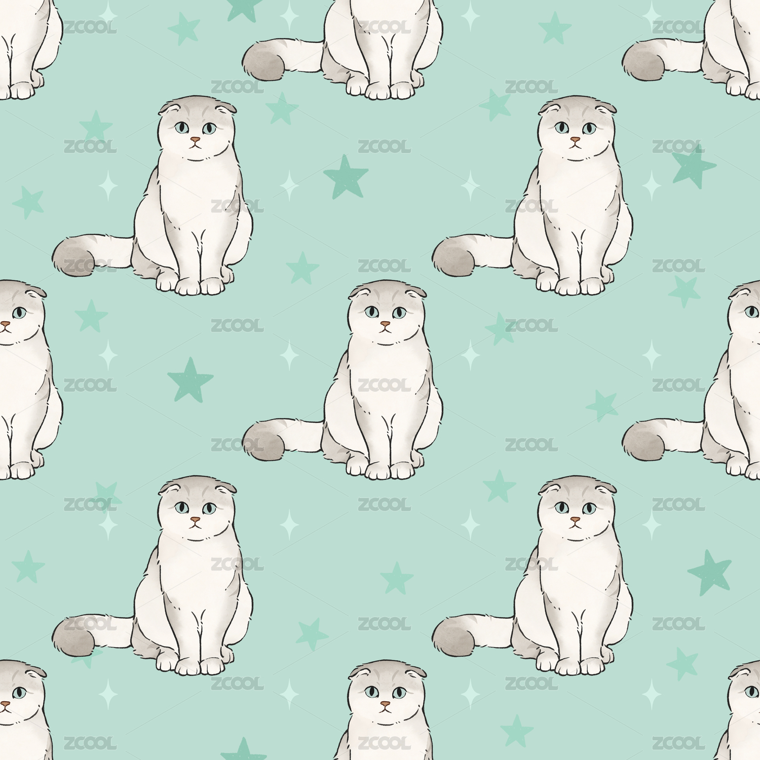 猫猫插画 无缝拼接图案