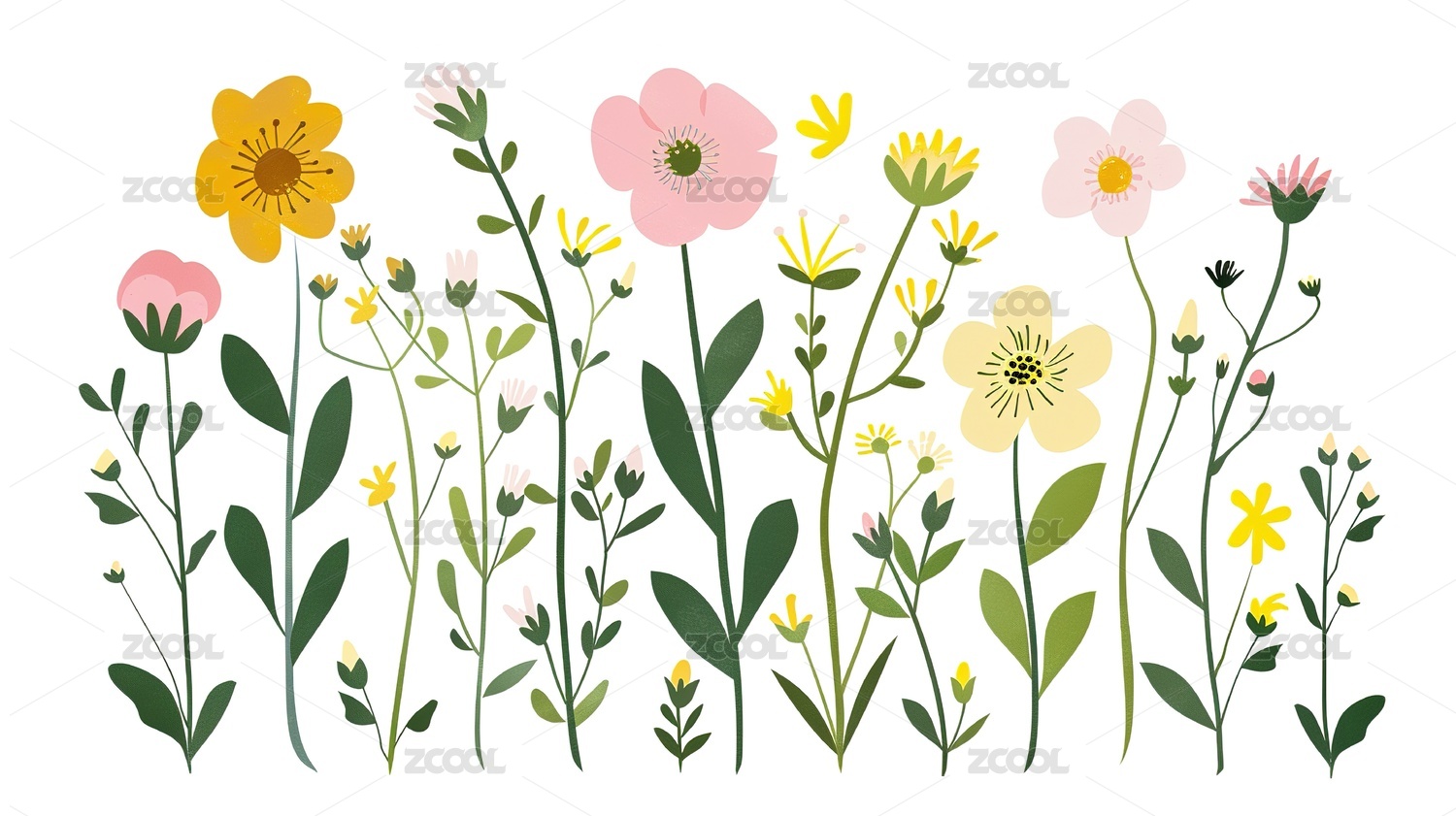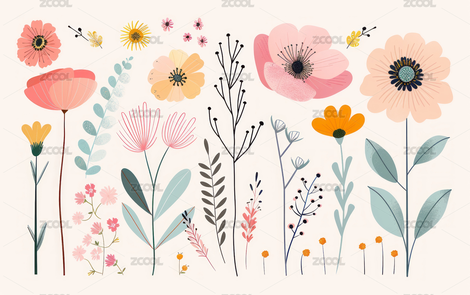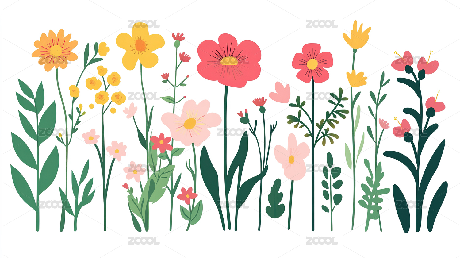 植物,插图,插画,彩色,花朵,花瓣,简约,线条,装饰,叶子
