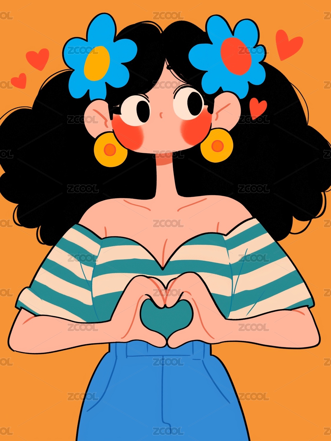 比爱心的女孩插画
