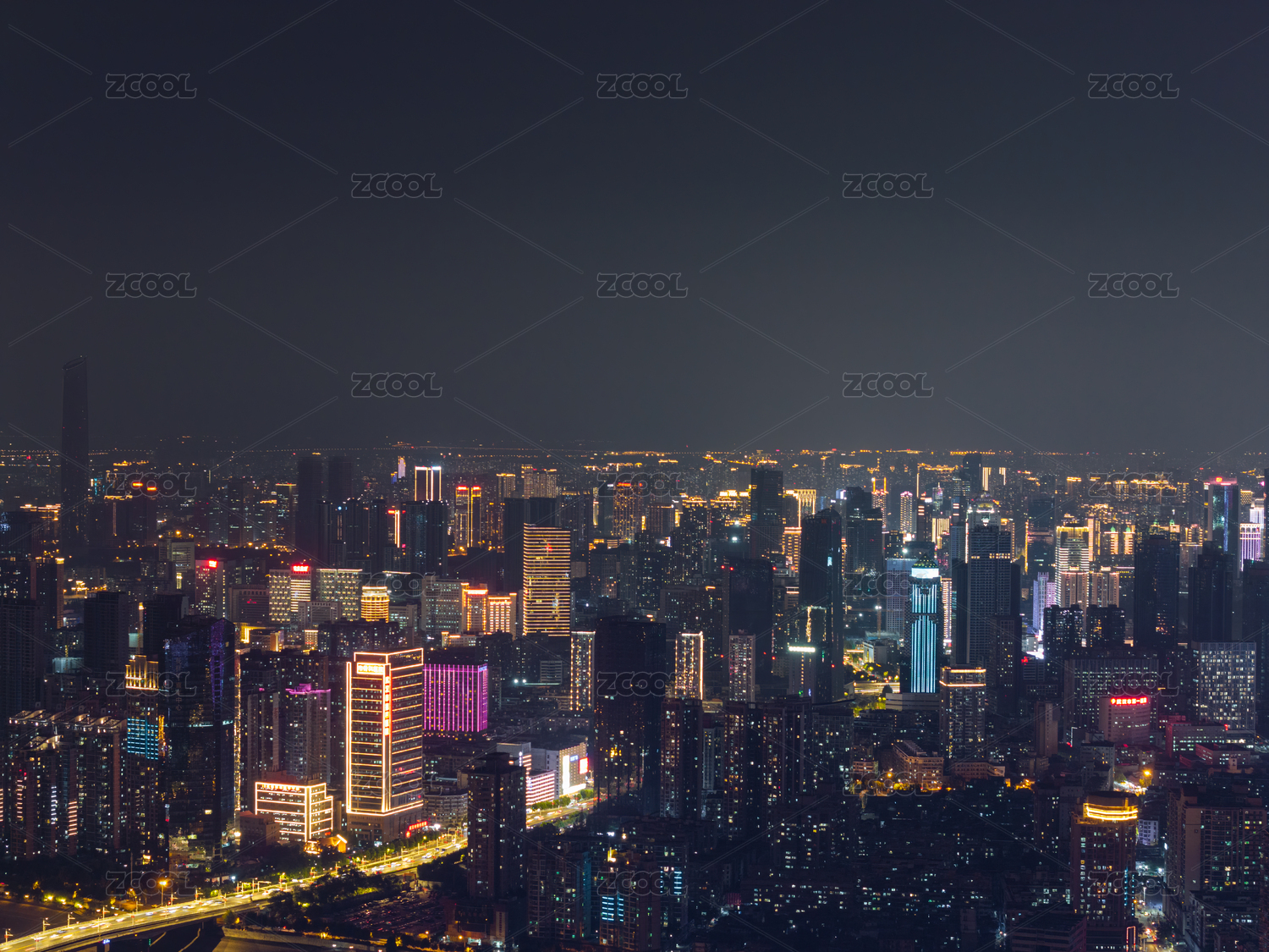 佛山礌岗公园魁星阁眺望千灯湖城市繁华夜景