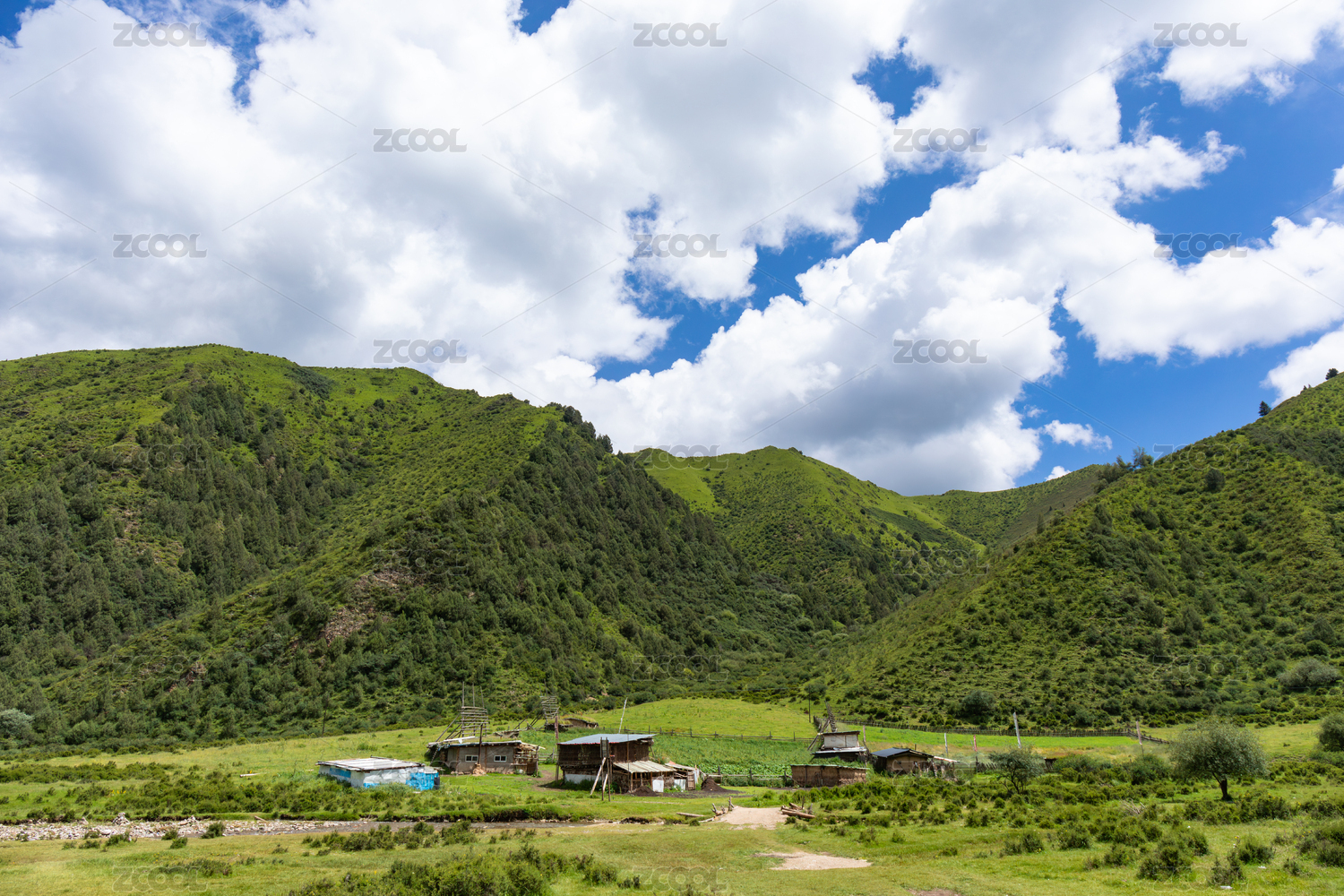 甘南秘境洛克之路连绵绿色山脉蓝天白云