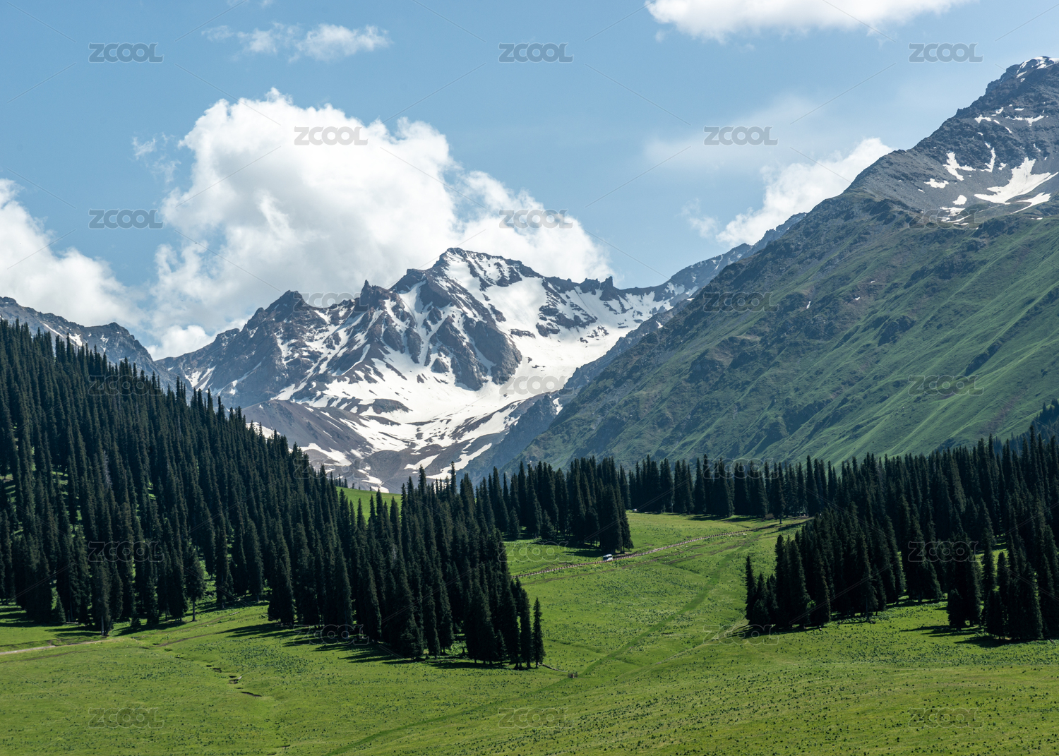 中国新疆伊犁库尔德宁雪山森林自然风光