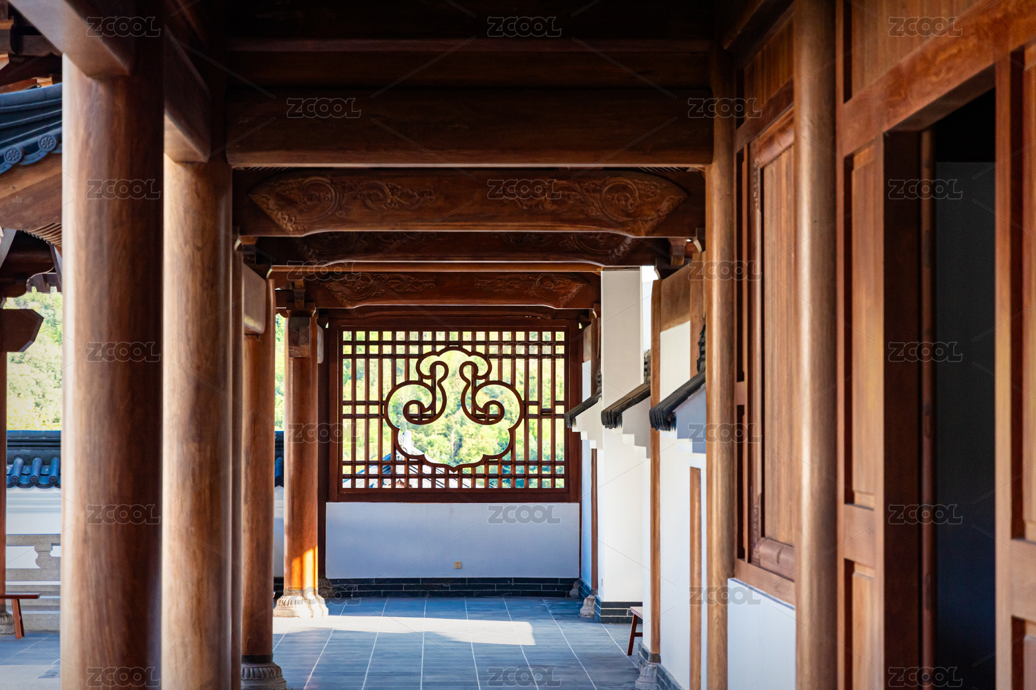 浙江绍兴天章之寺传统木结构建筑的庄严入口
