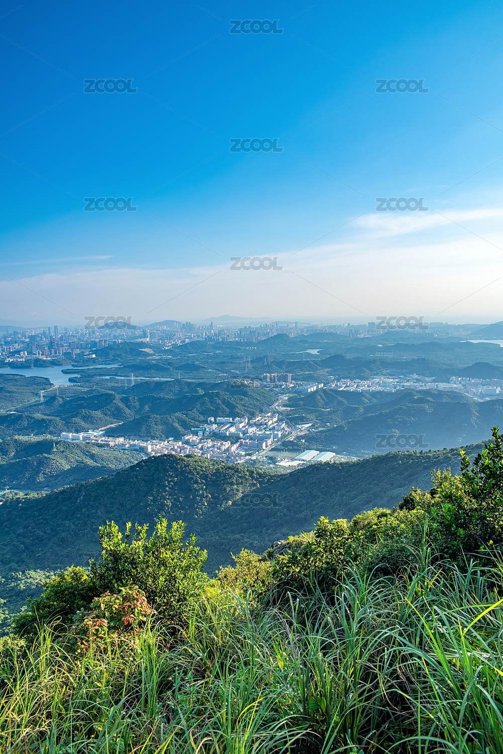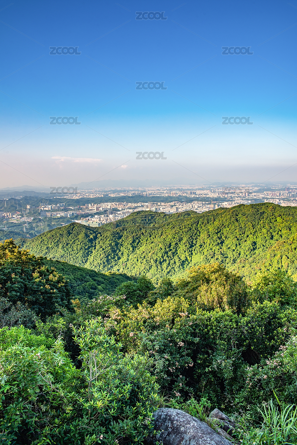 半山半城/羊台山森林公园山景风光和深圳城市高楼