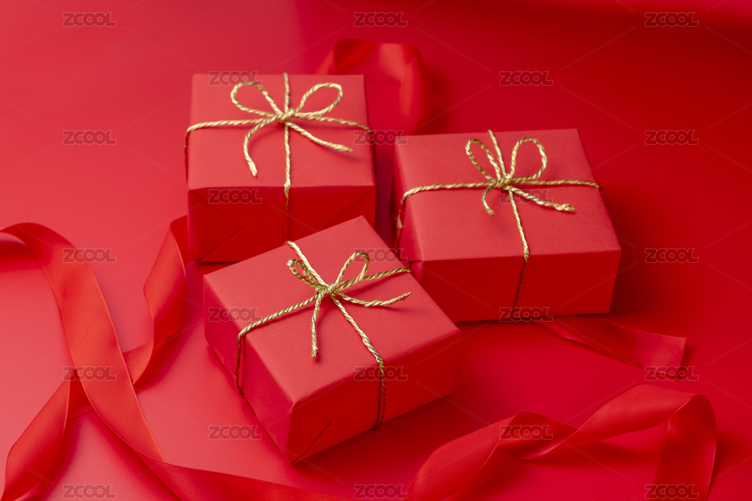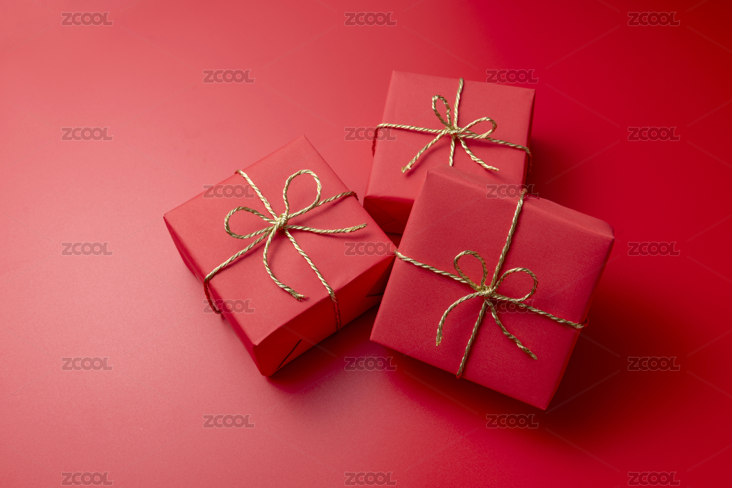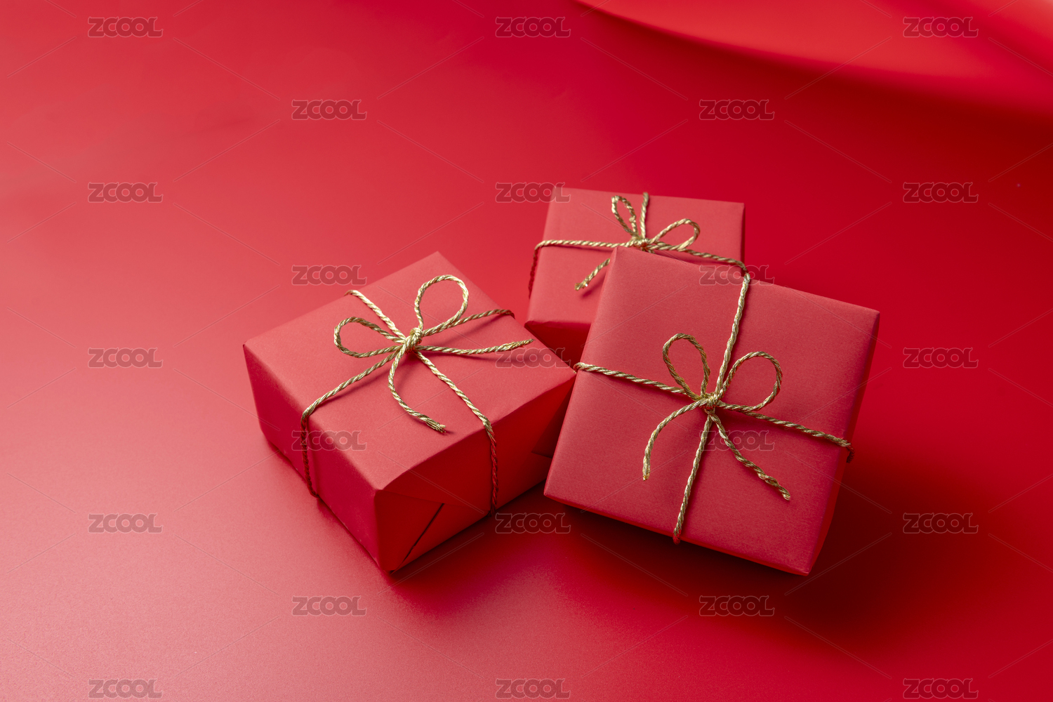 三个叠在一起的红色礼物盒盒子