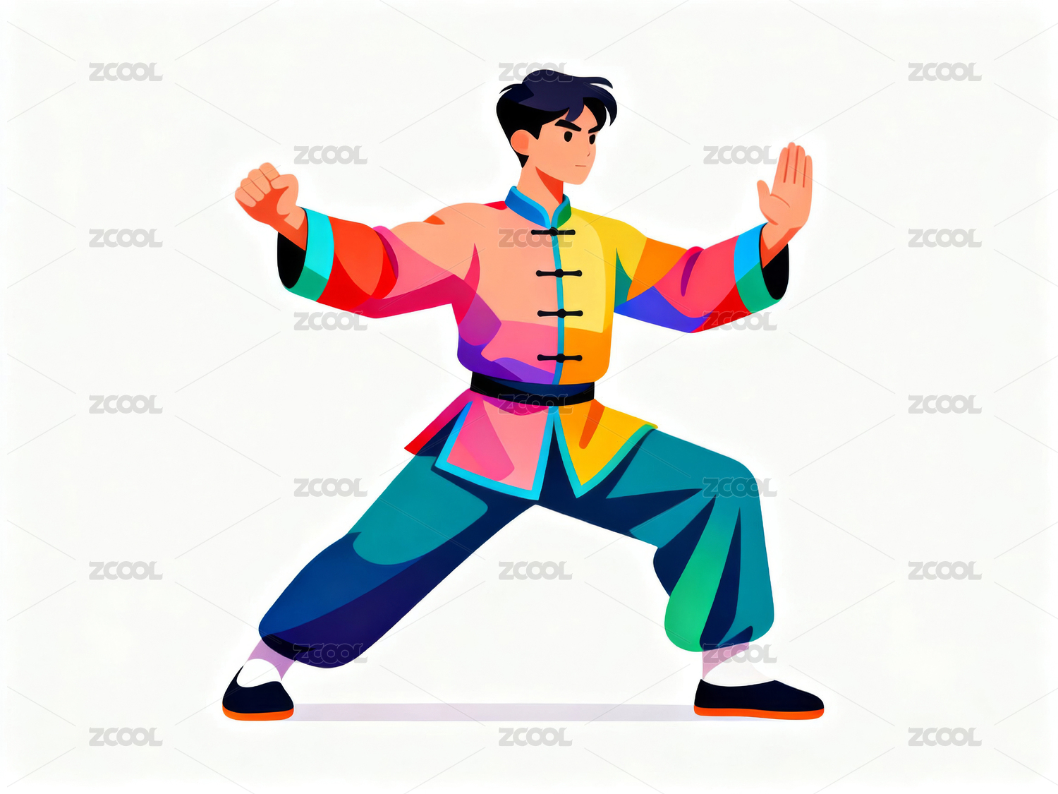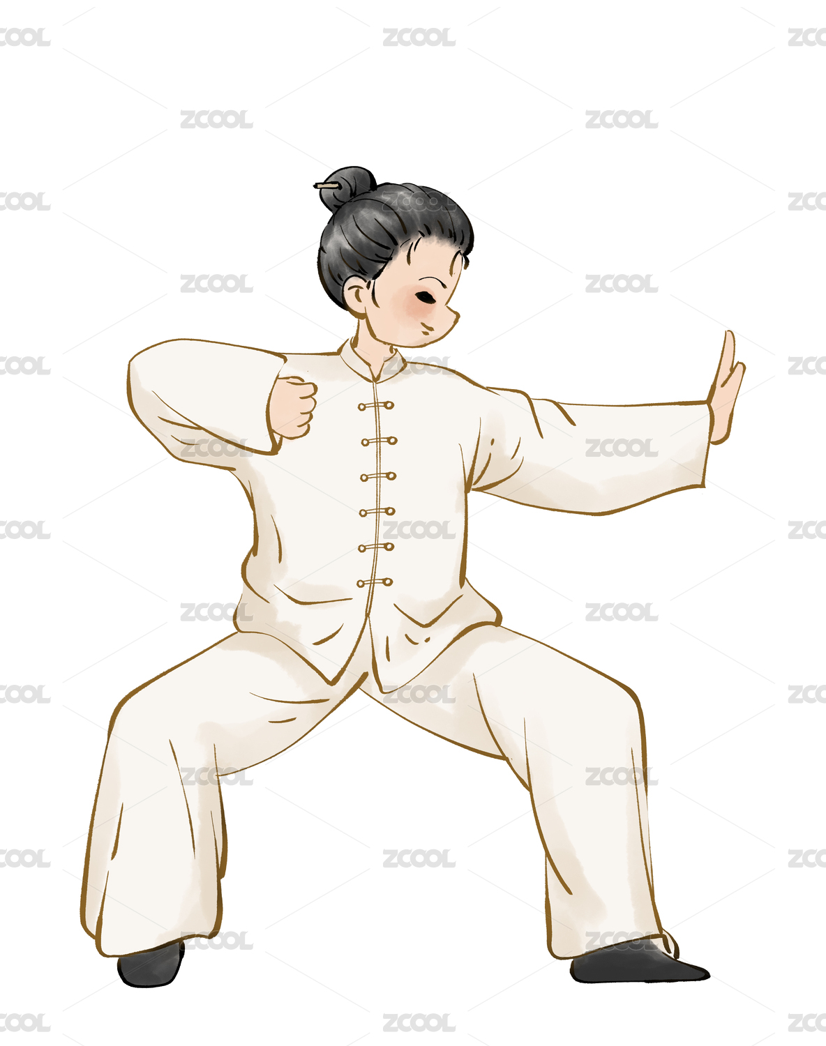 练习太极拳的卡通人物