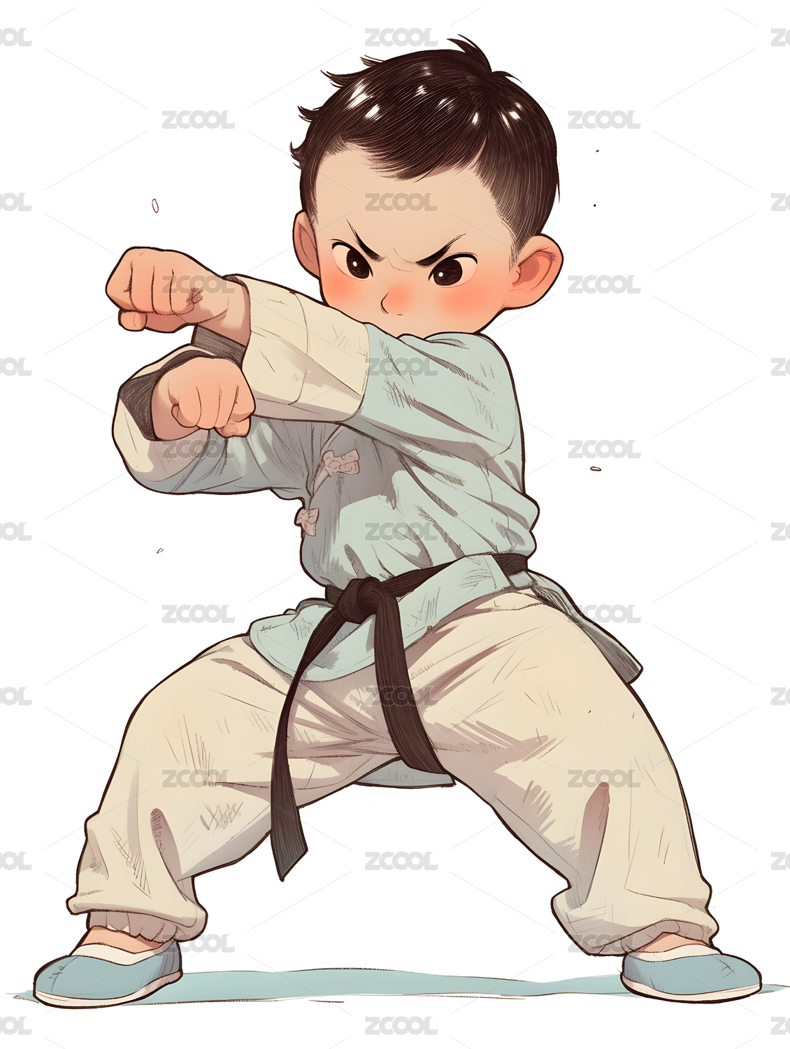 练武术练功的儿童少年插画