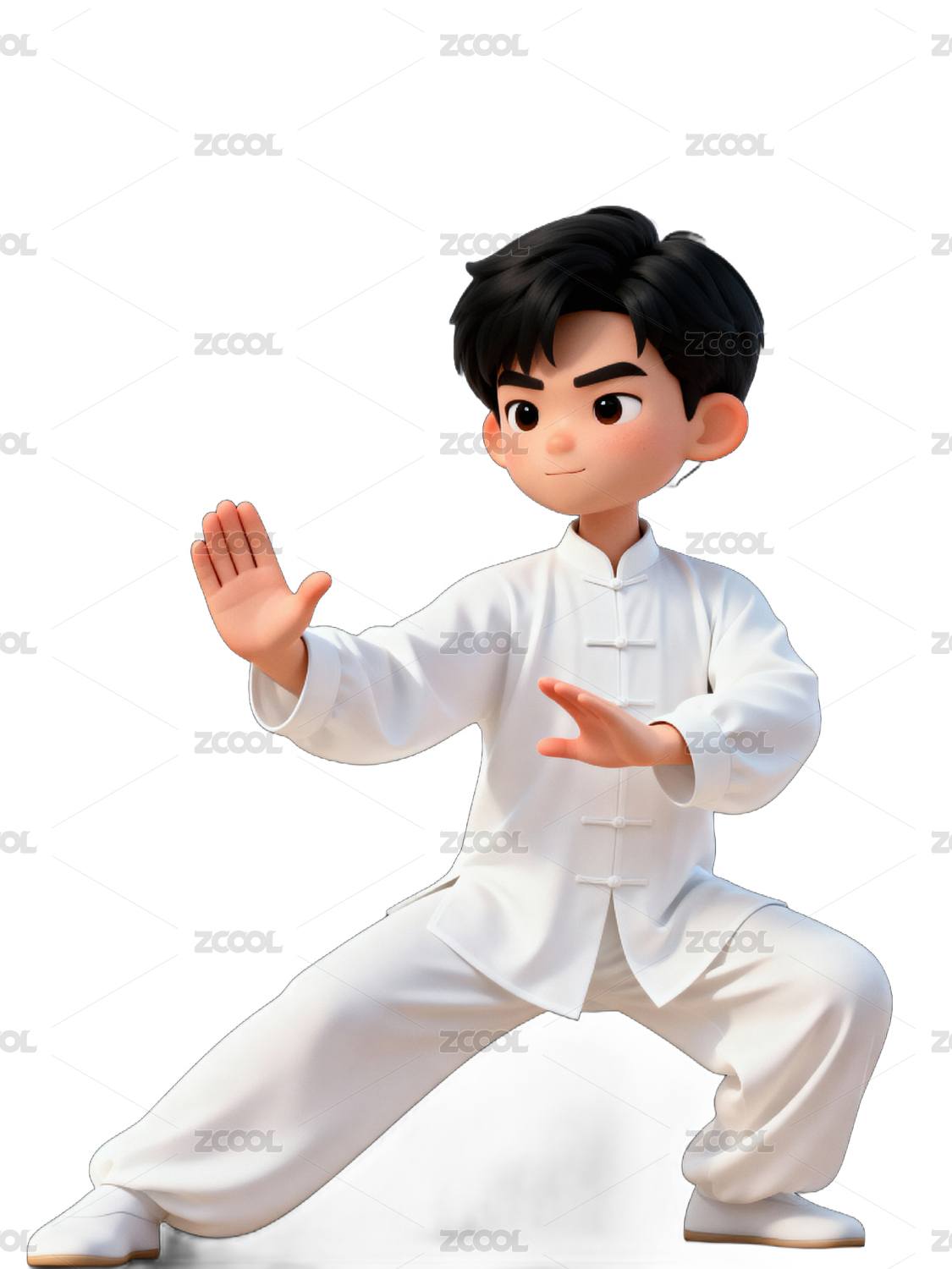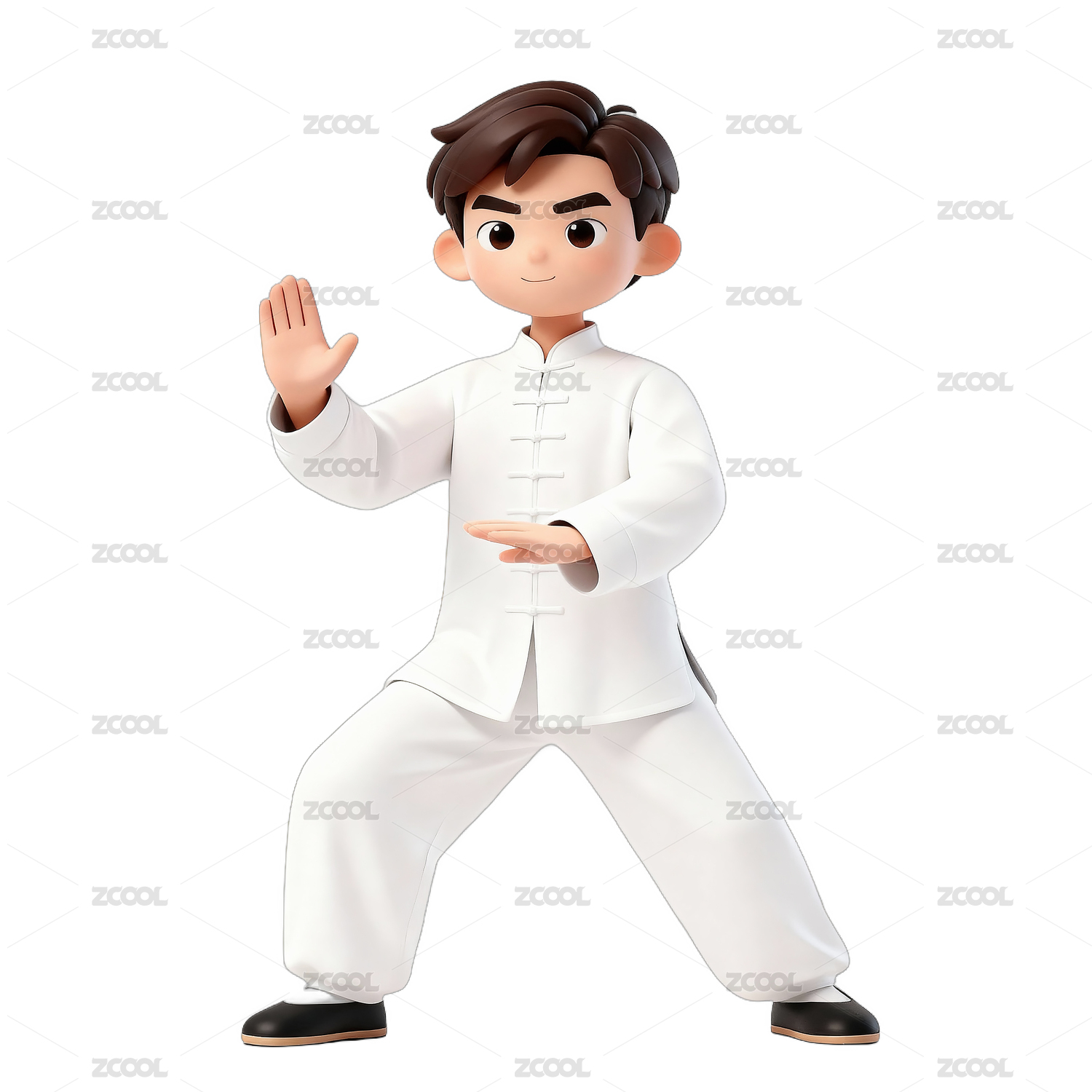 卡通人物练习太极姿势