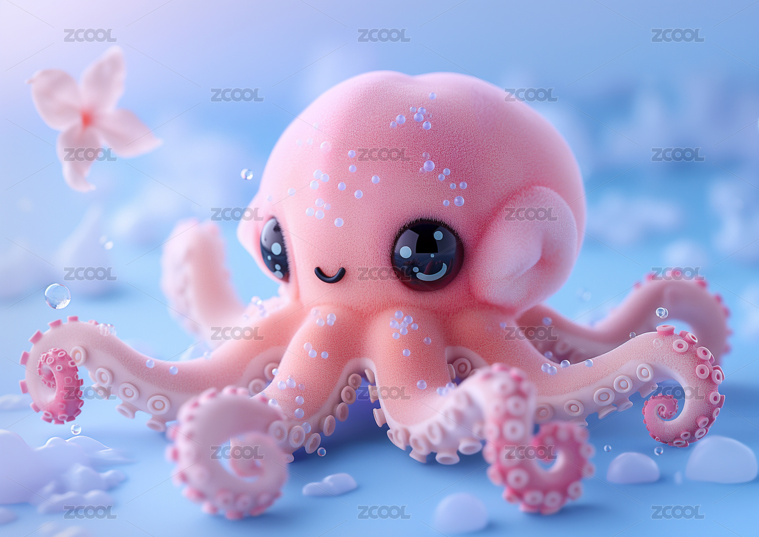 章鱼可爱唯美野生动物3D卡通插画壁纸