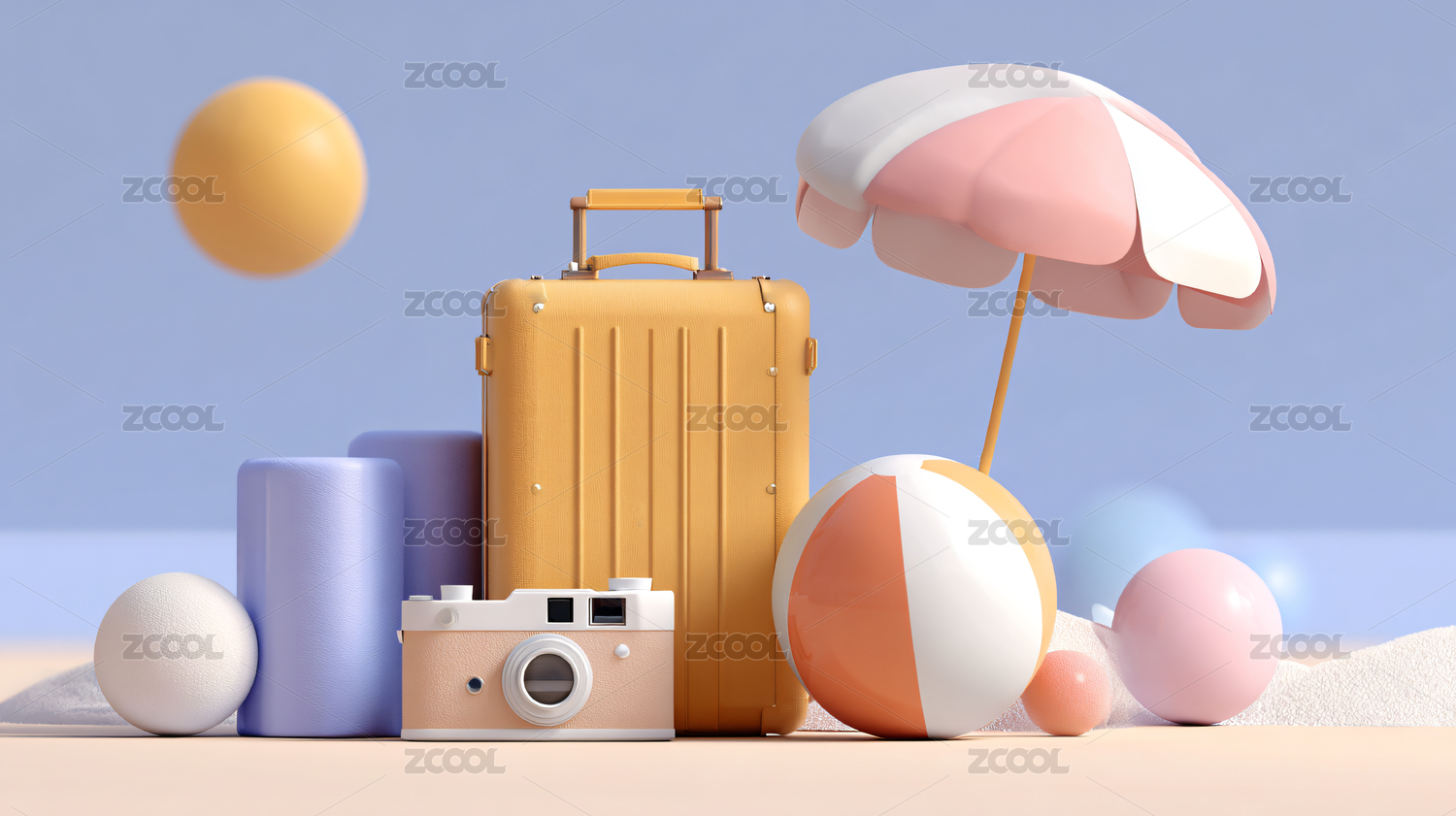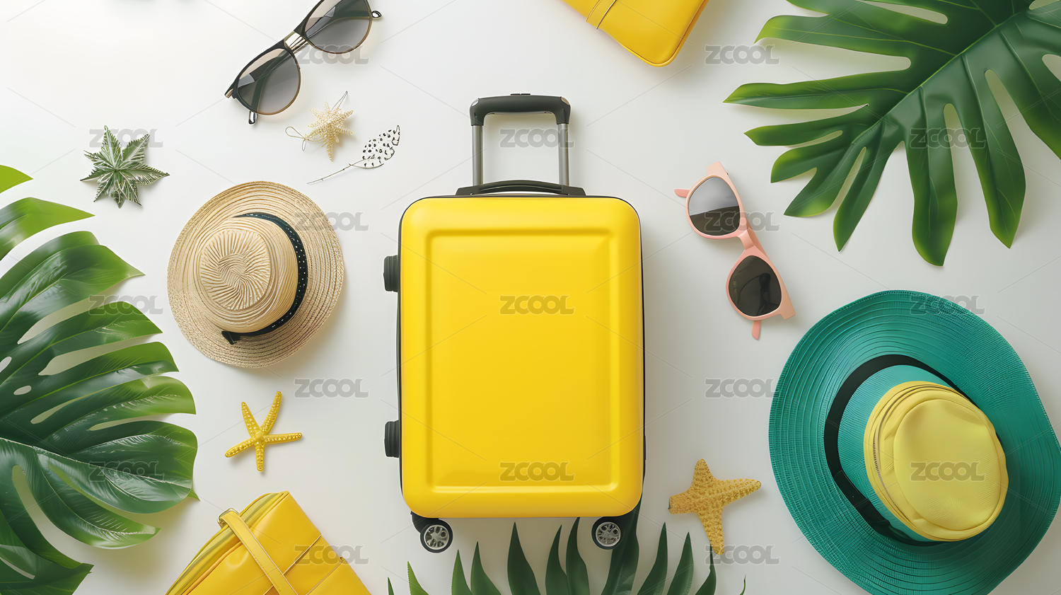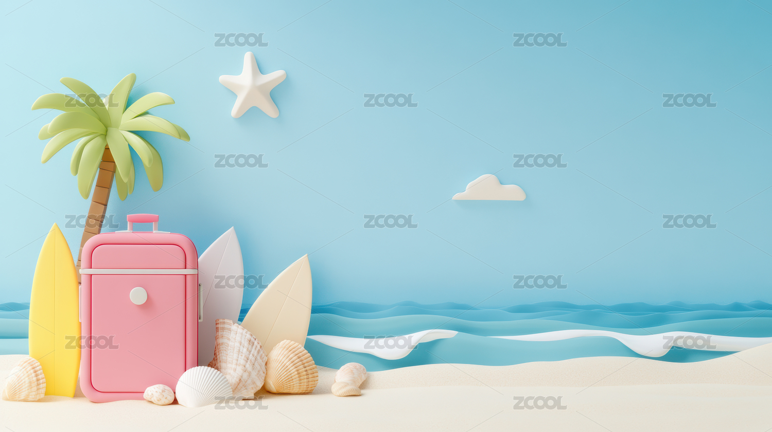 3D,旅游,行李箱,滑板,椰子树,海边,宣传,旅行,小清新,墨镜